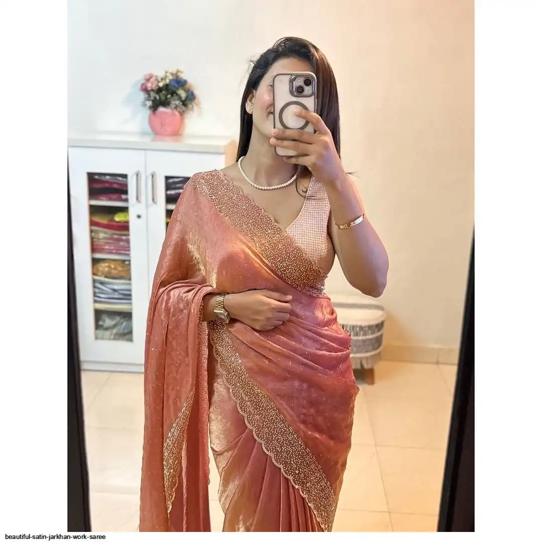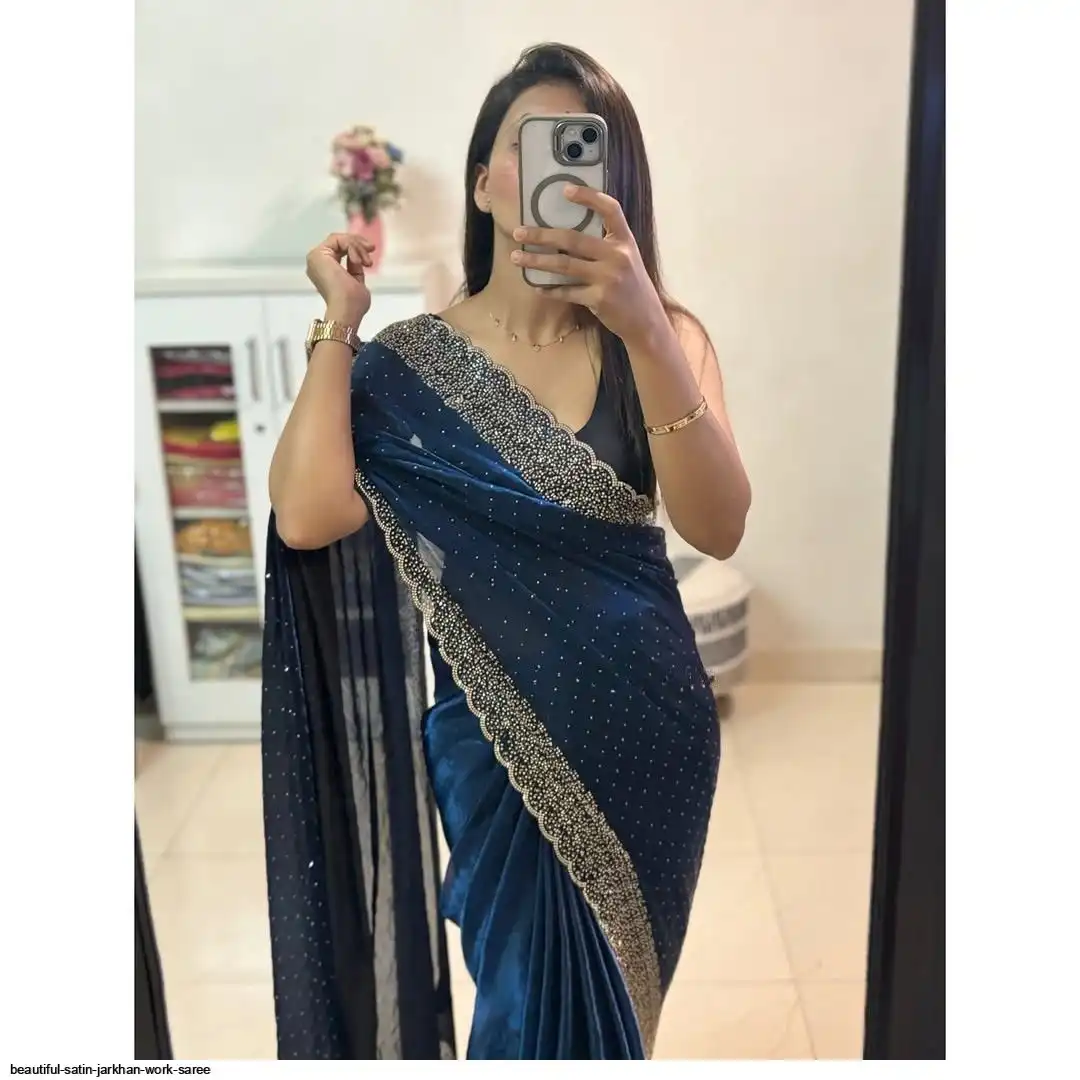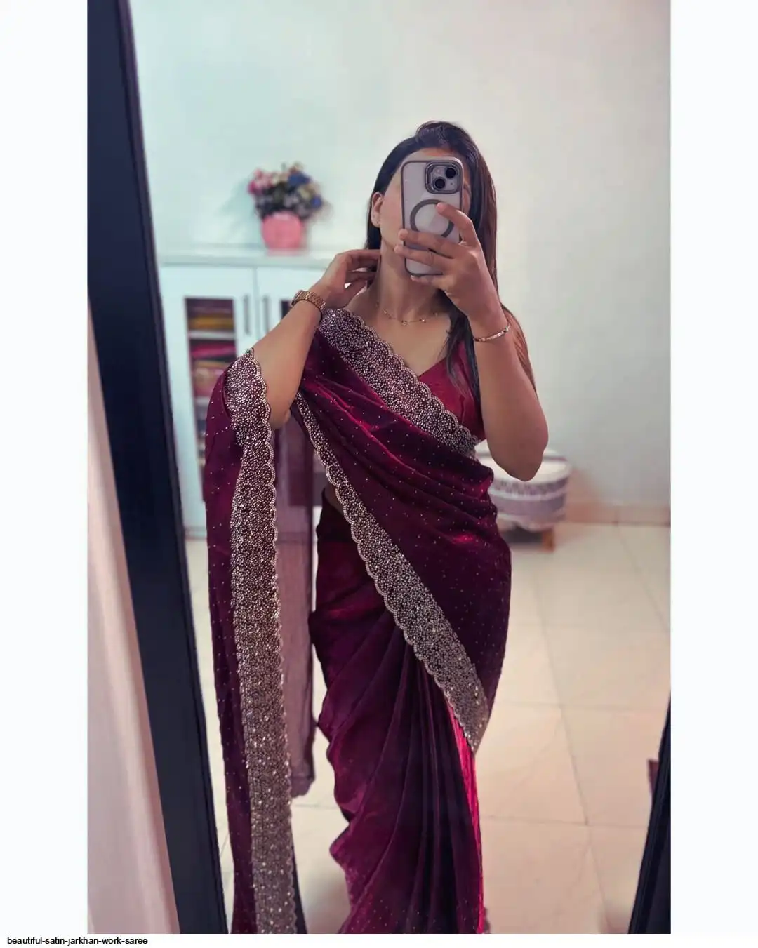 Timeless Elegance – Zarkan Work Satin Saree by Shakuntala Saree