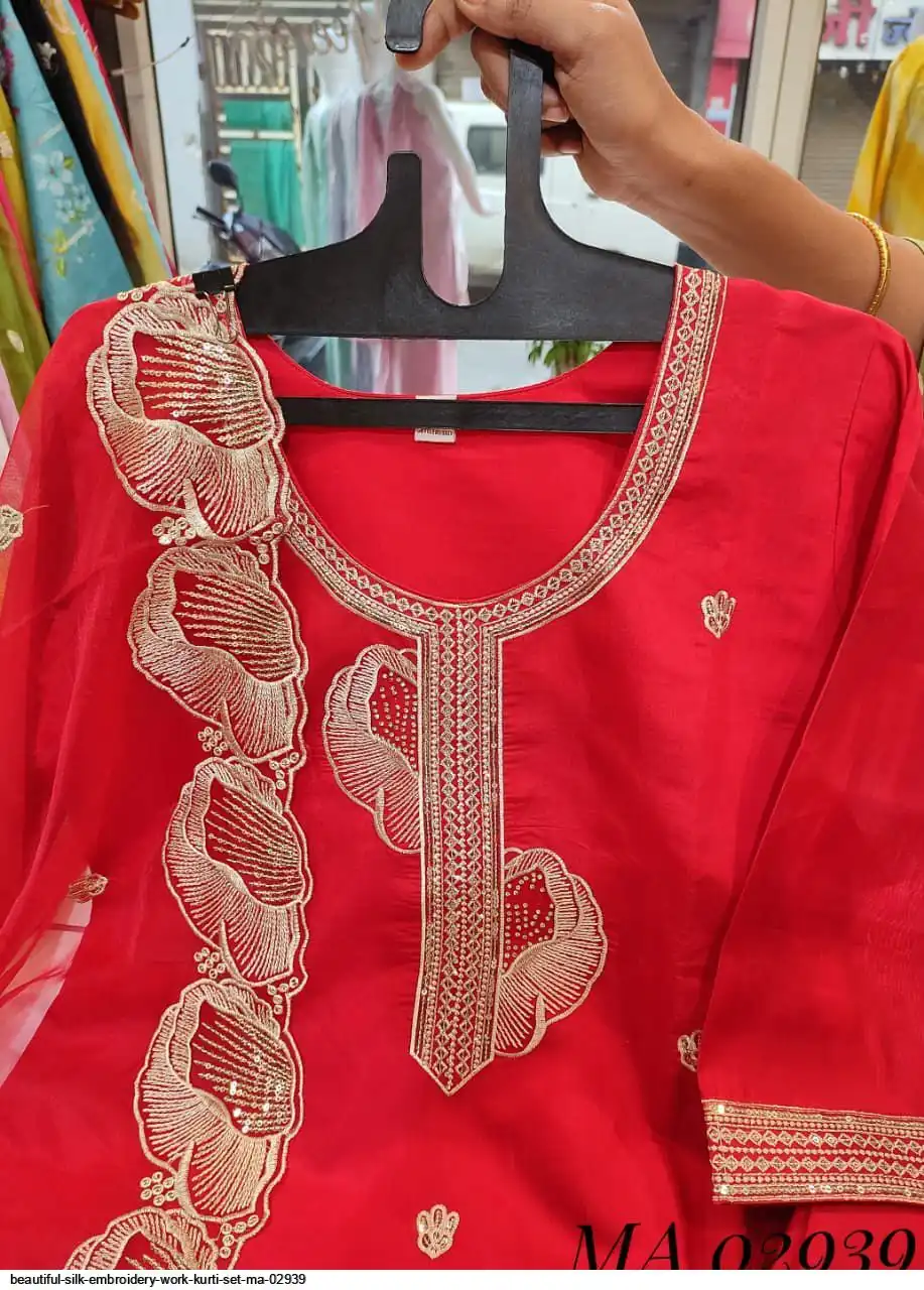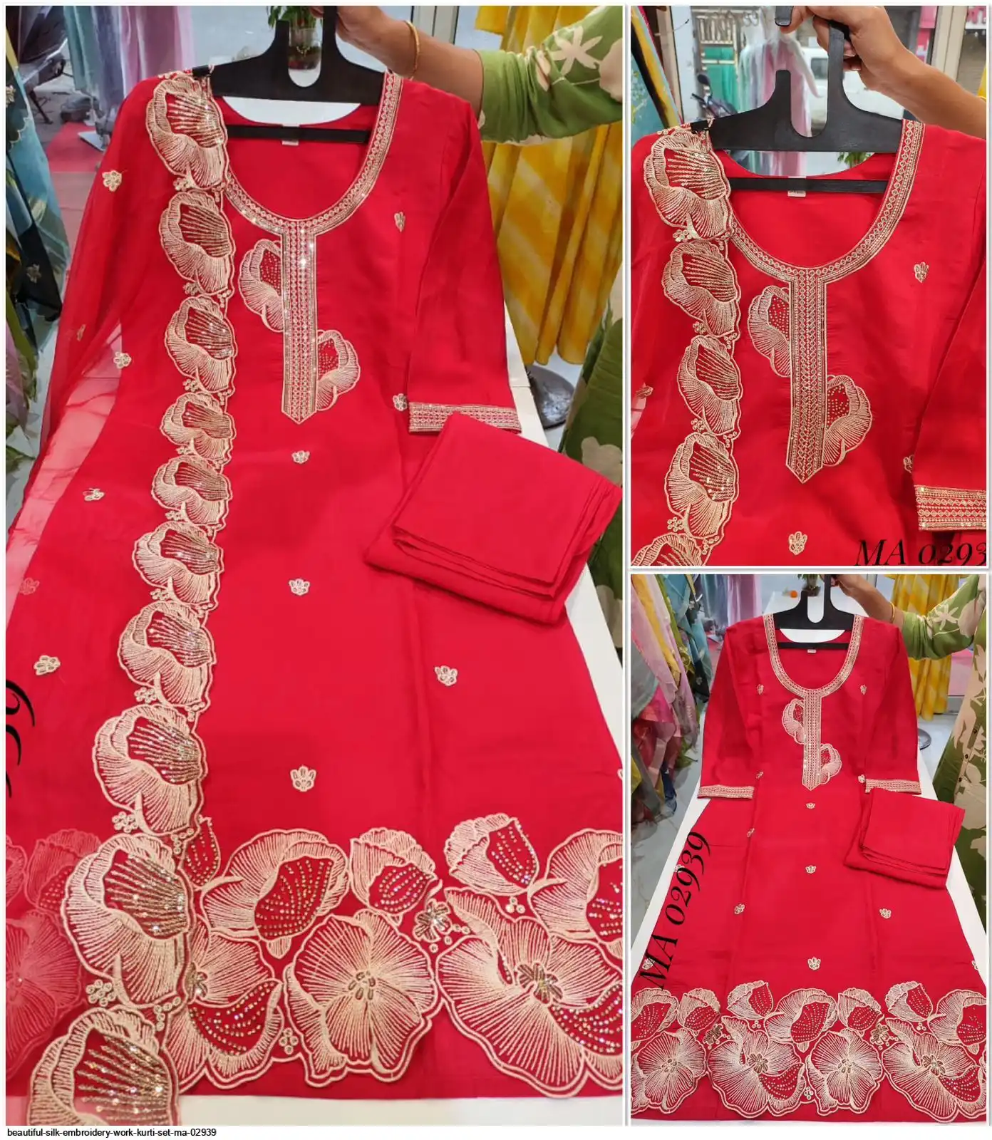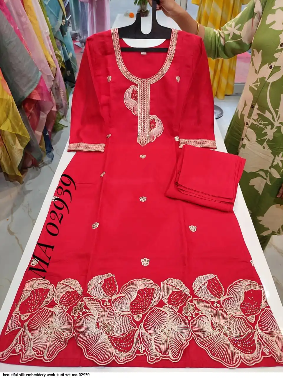 top - roman silk straight kurti with beautiful thread embroidery sequence and cut work