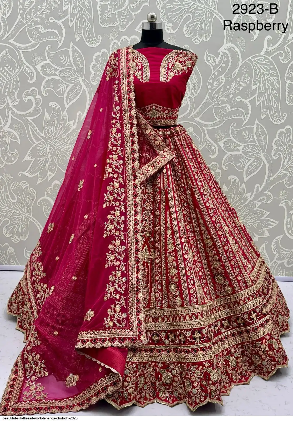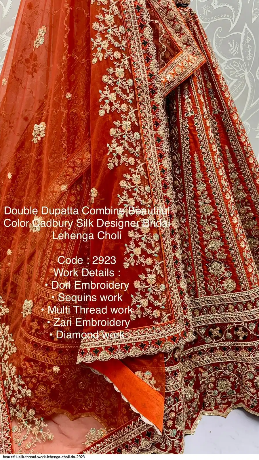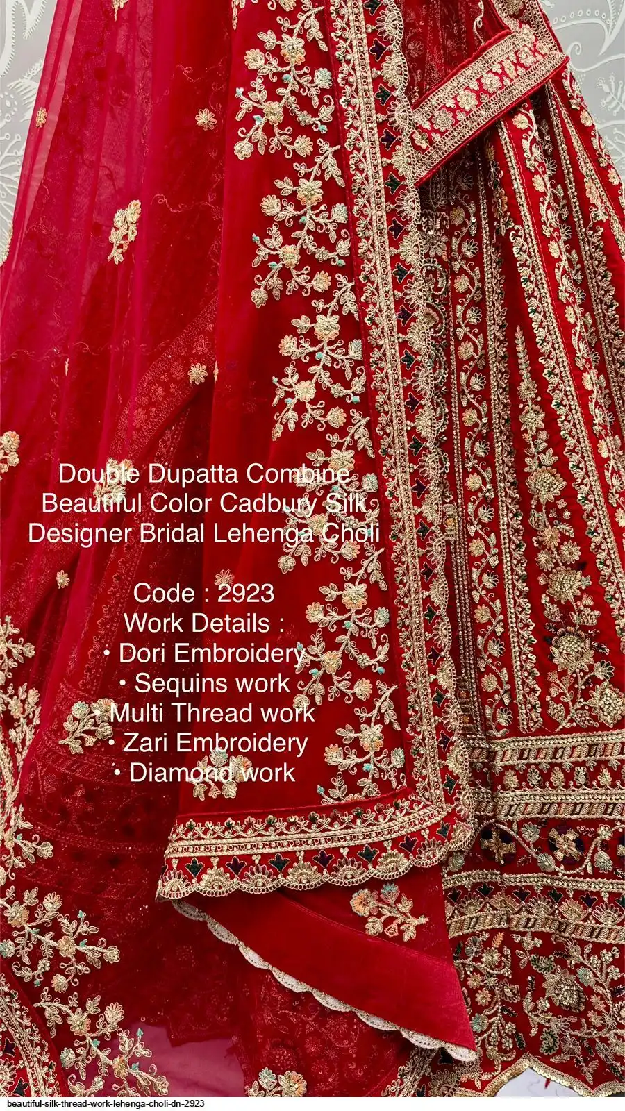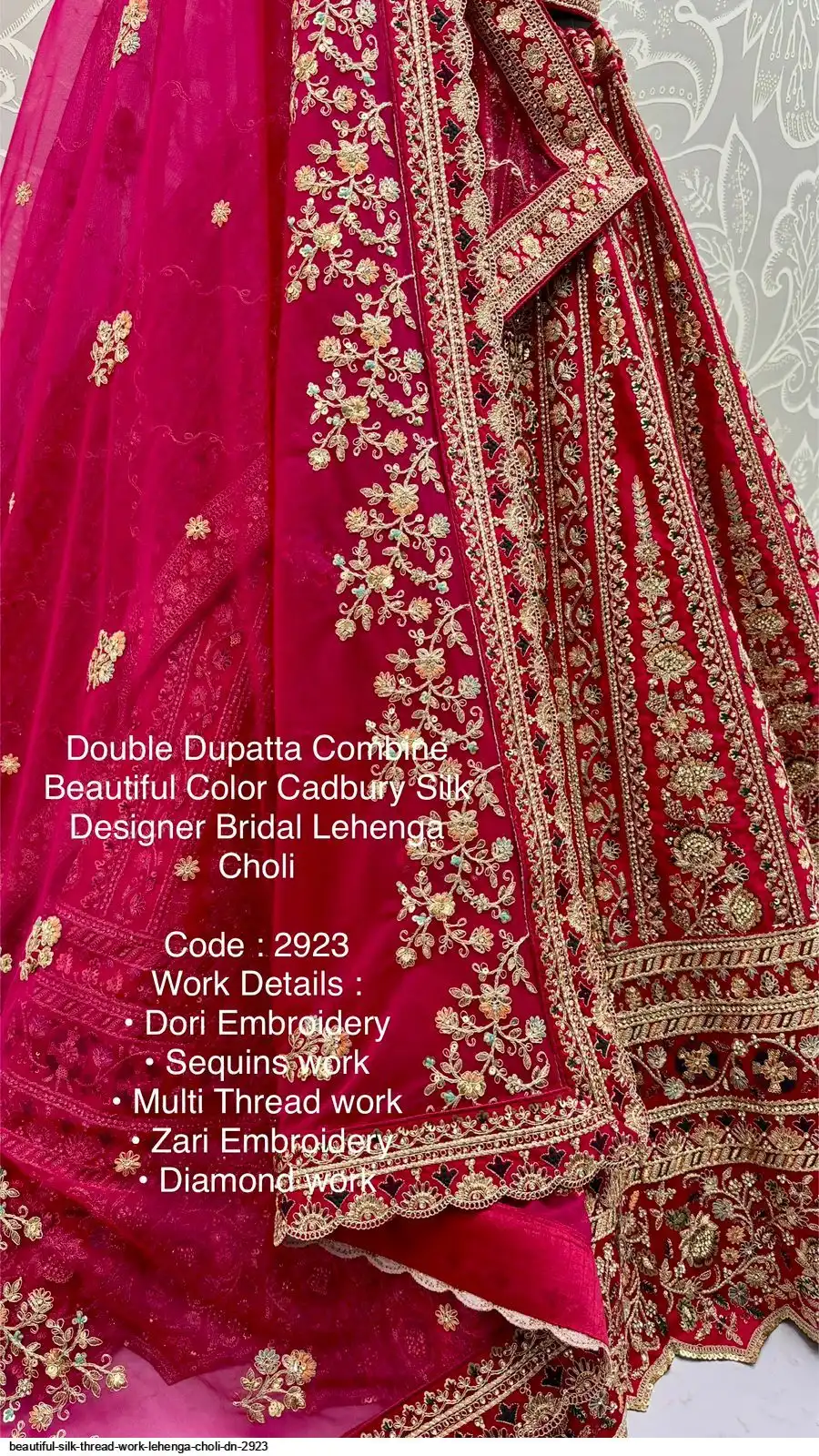 Double Dupatta Combine Beautiful Color Cadbury Silk Designer Bridal Lehenga Choli
