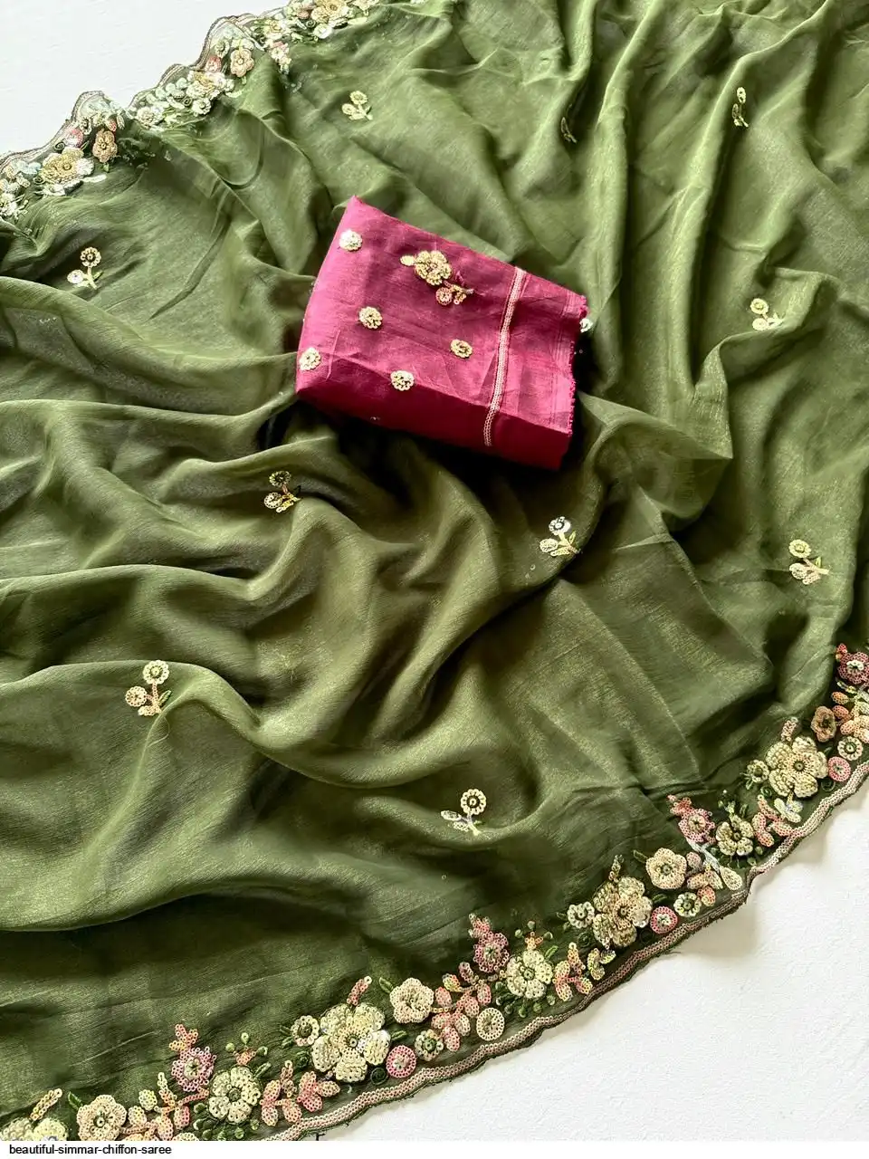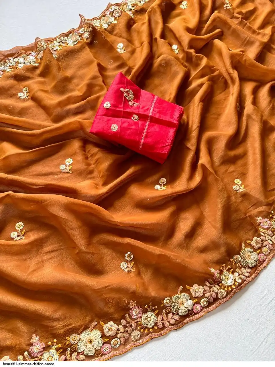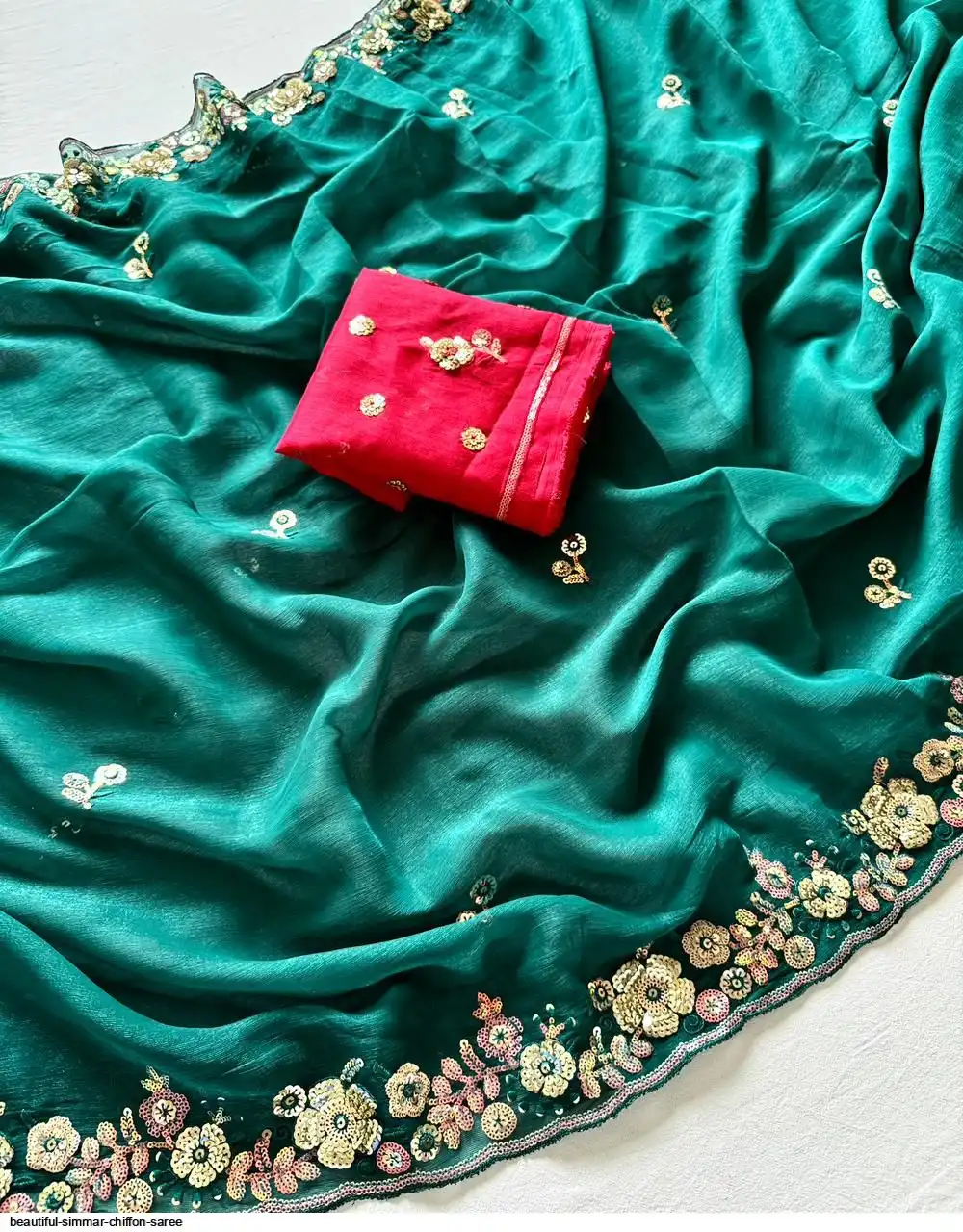 ▶️ Fabric - Simmar Chiffon Fabric With 4 Sequence Multi Colours Embroidery Work In Saree And Contrast Heavy Sequence Embroidery Work Blouse👚