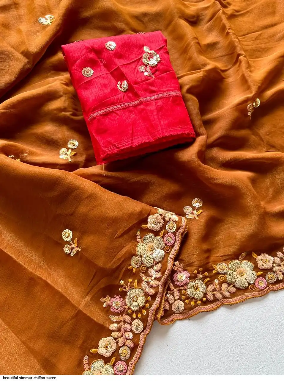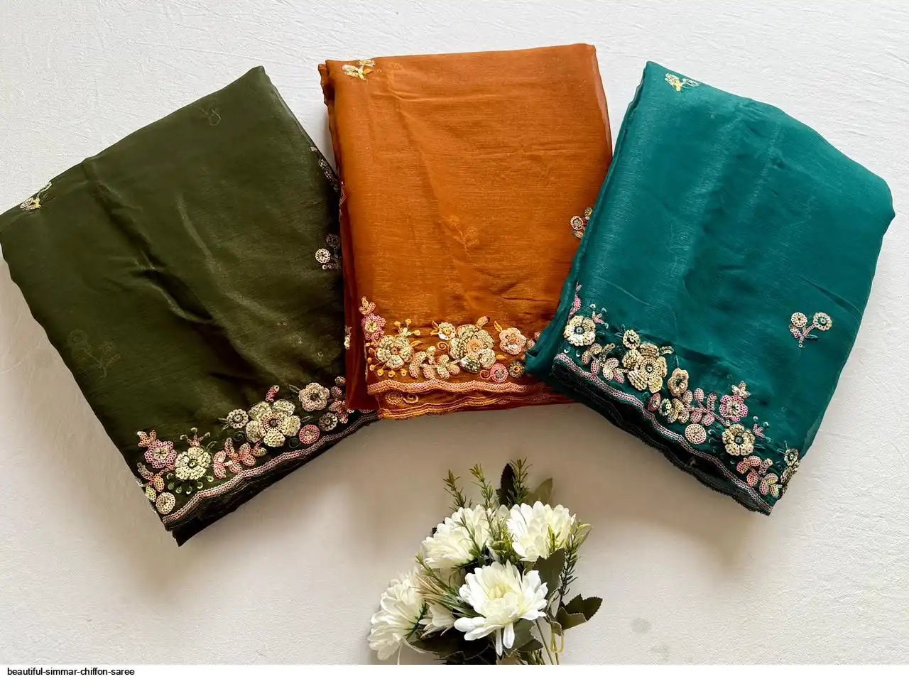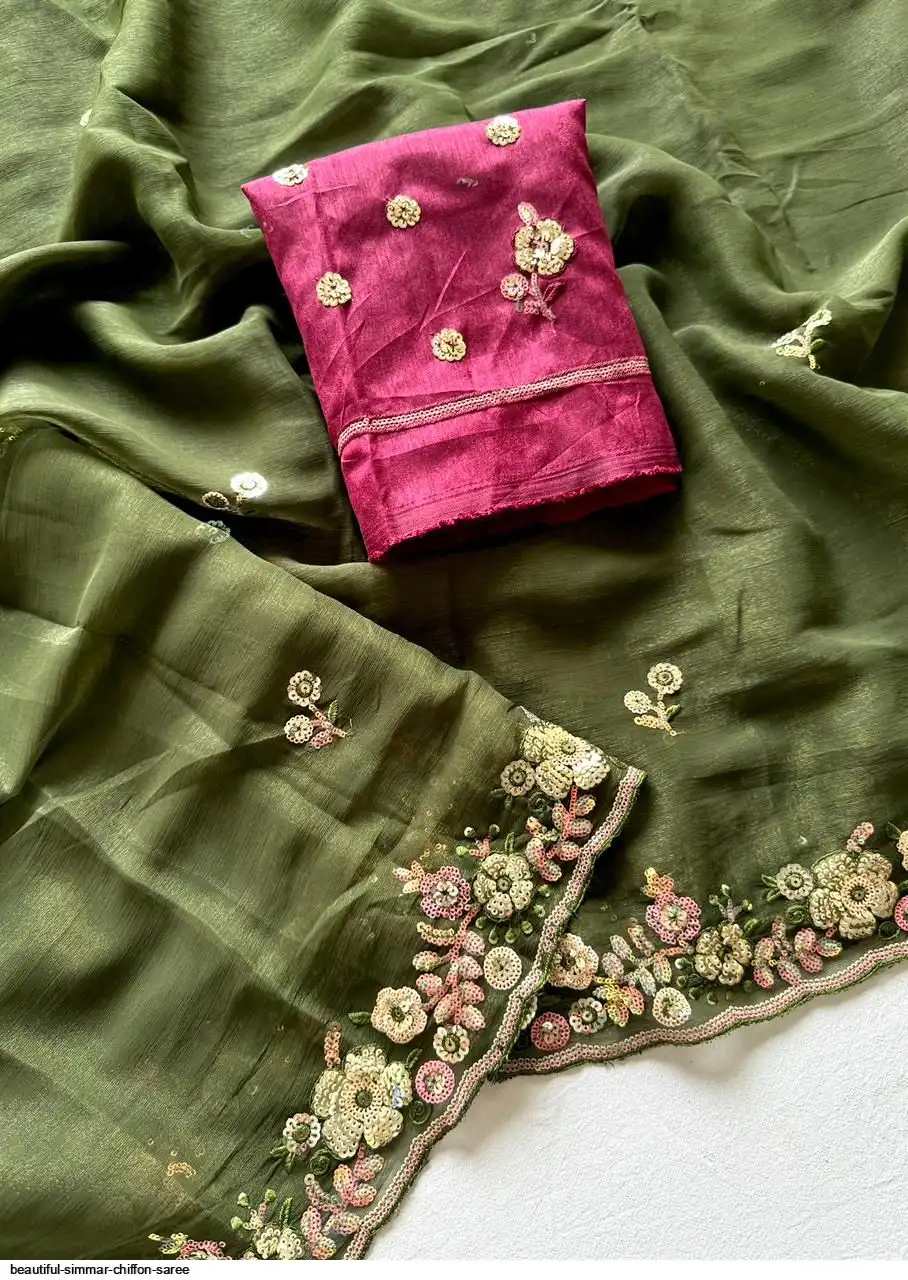 ▶️ Fabric - Simmar Chiffon Fabric With 4 Sequence Multi Colours Embroidery Work In Saree And Contrast Heavy Sequence Embroidery Work Blouse👚