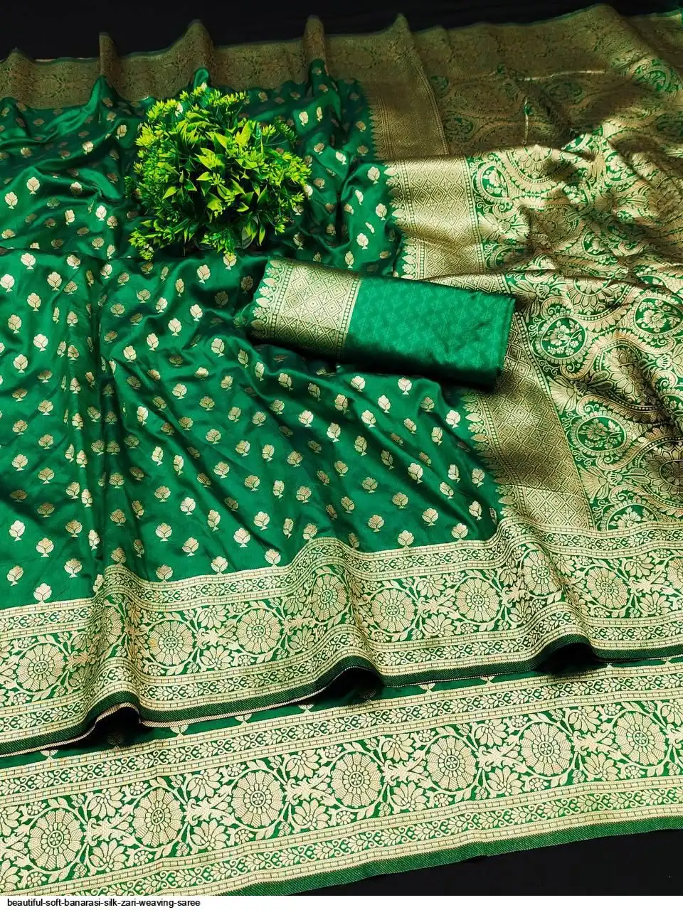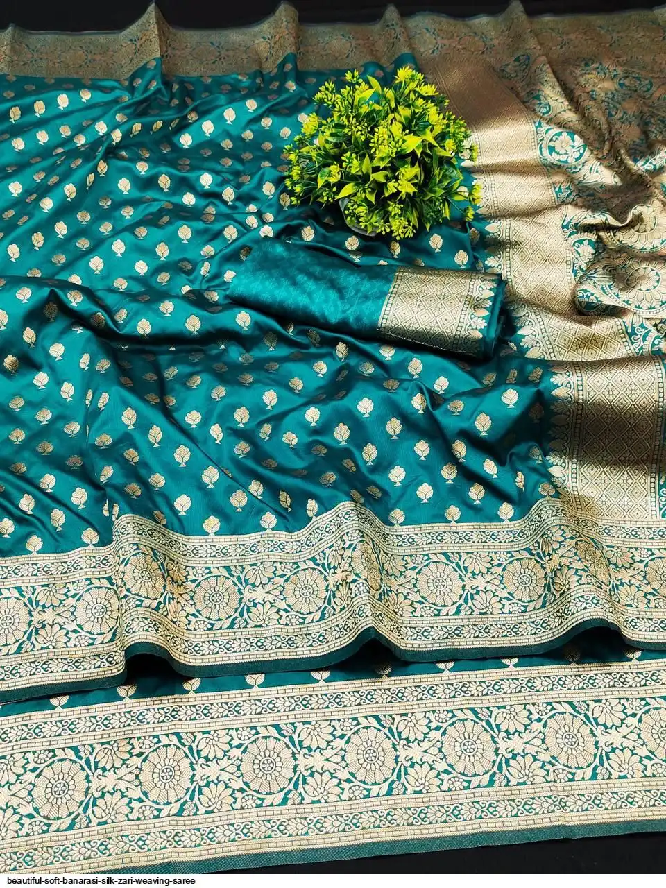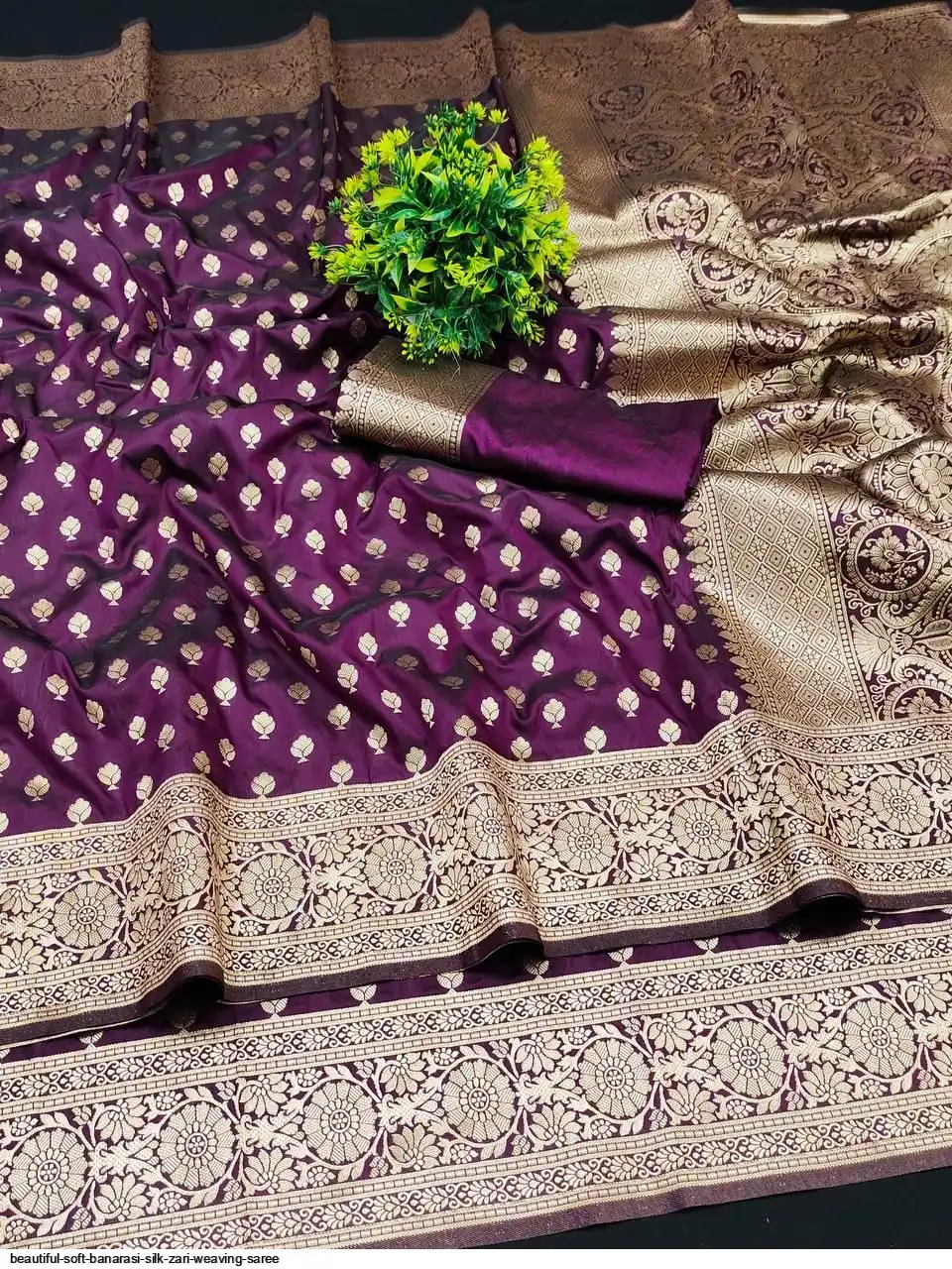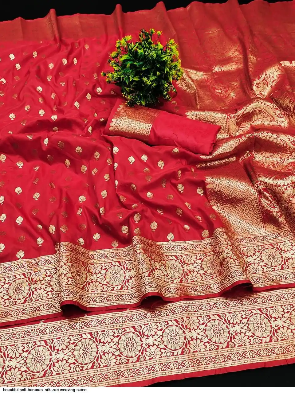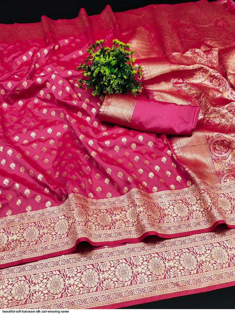 Saree :- Soft Banarasi silk saree with gold zari weaving small motifs design all over the saree & Zari weawing Rich pallu with Zari weaving beautiful border.
