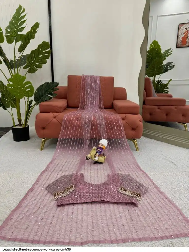 Looking some one for this same colour beautiful Designer Saree on Soft Net Febric with Thred & Sequnce work and blouse on also Soft Net Febric with Thred & Sequnce work.