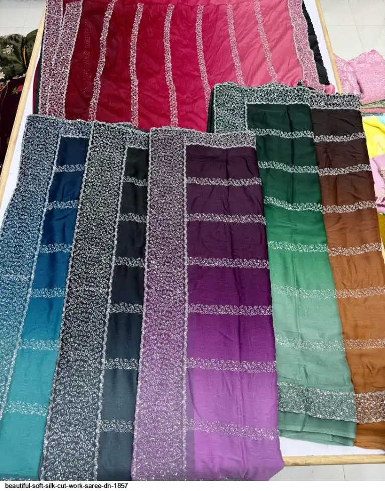 Work :Full Heavy Swarocky Work In all over saree with cut work border