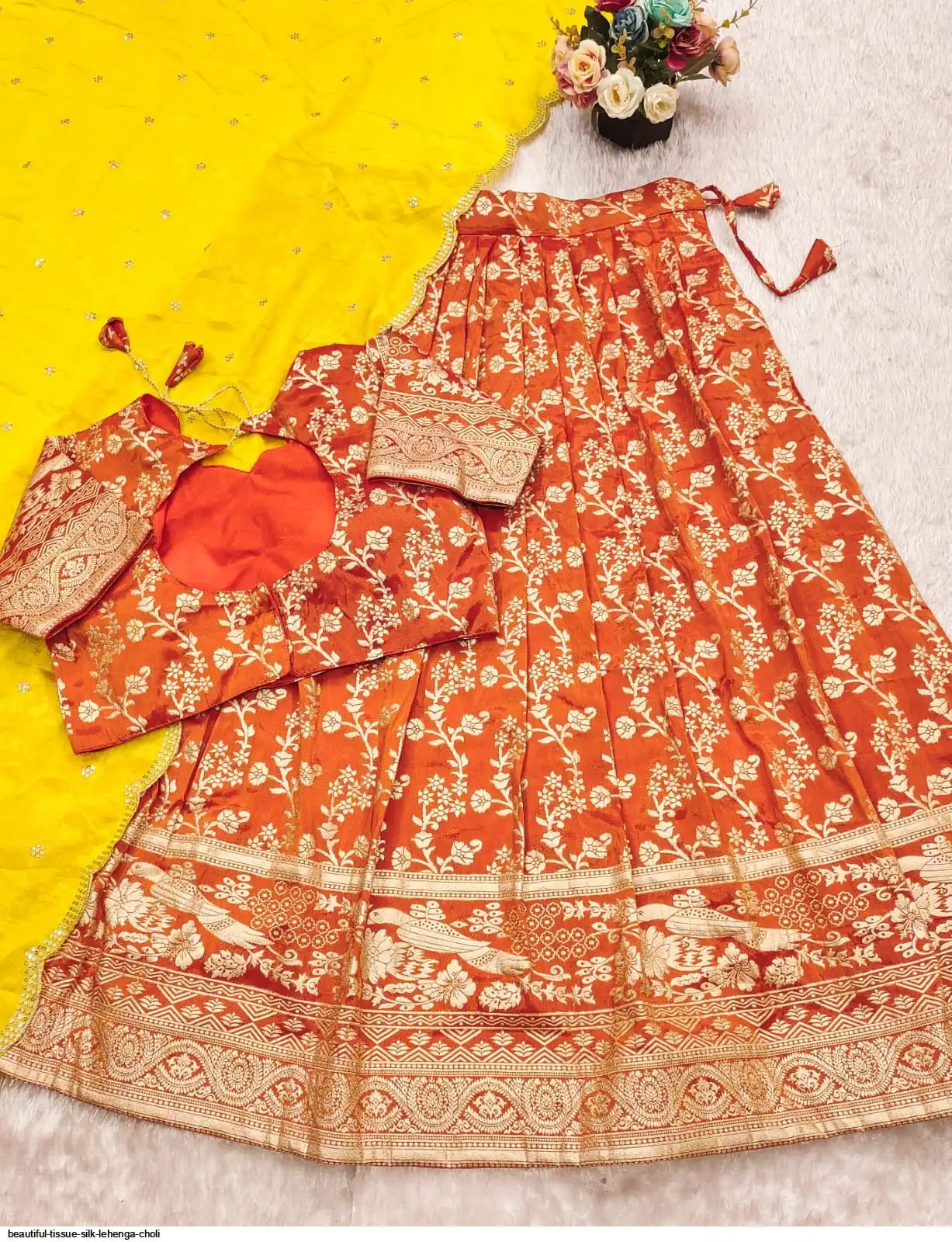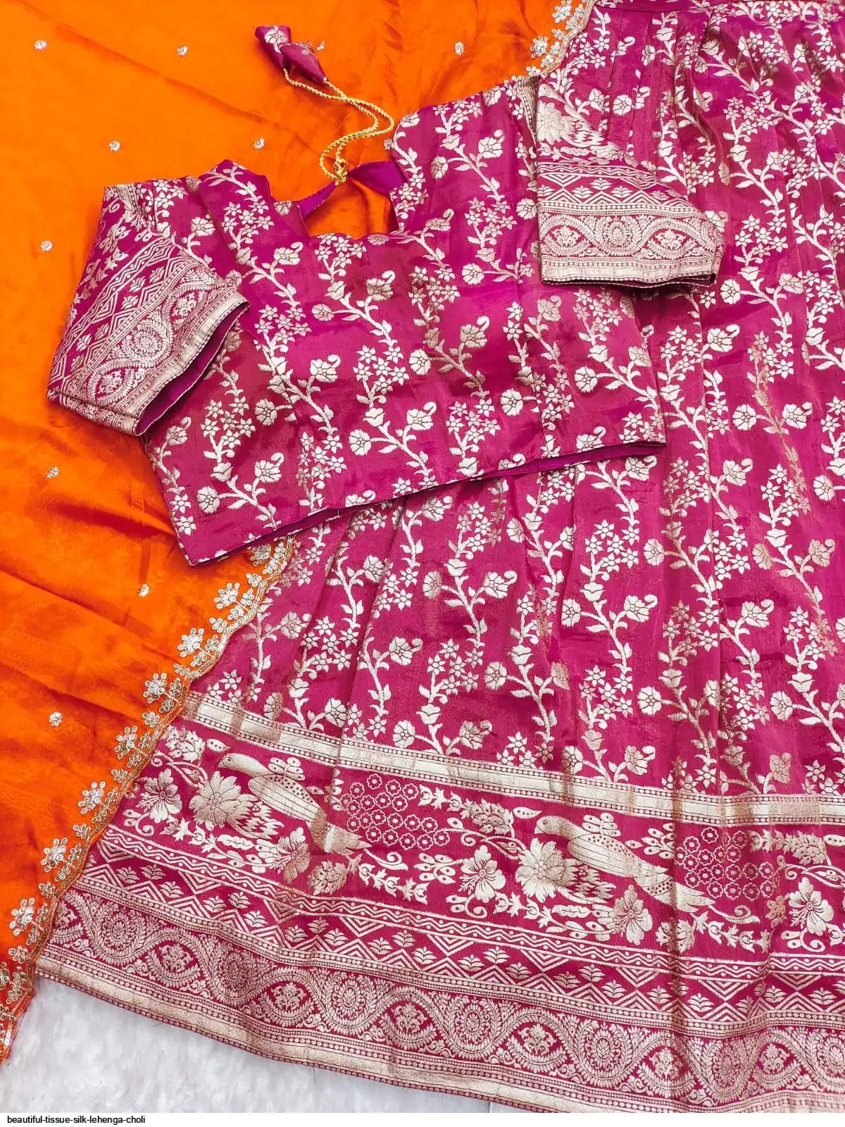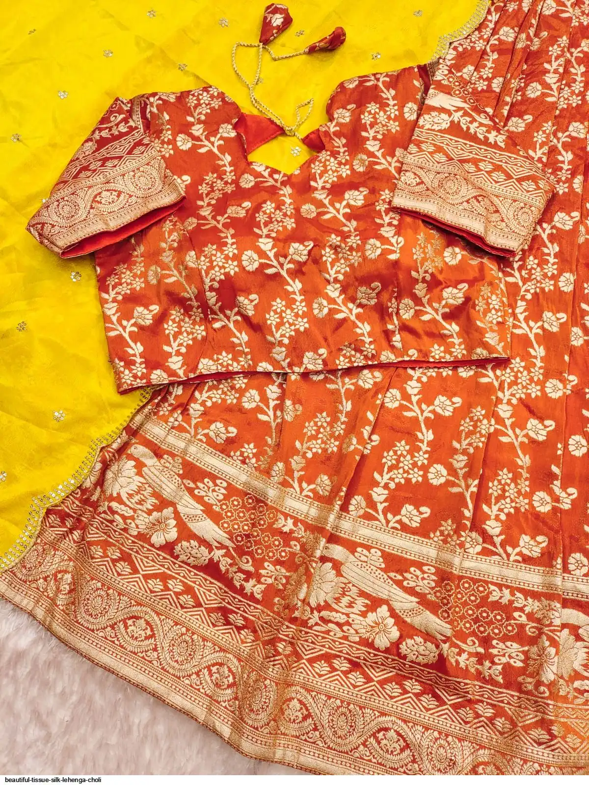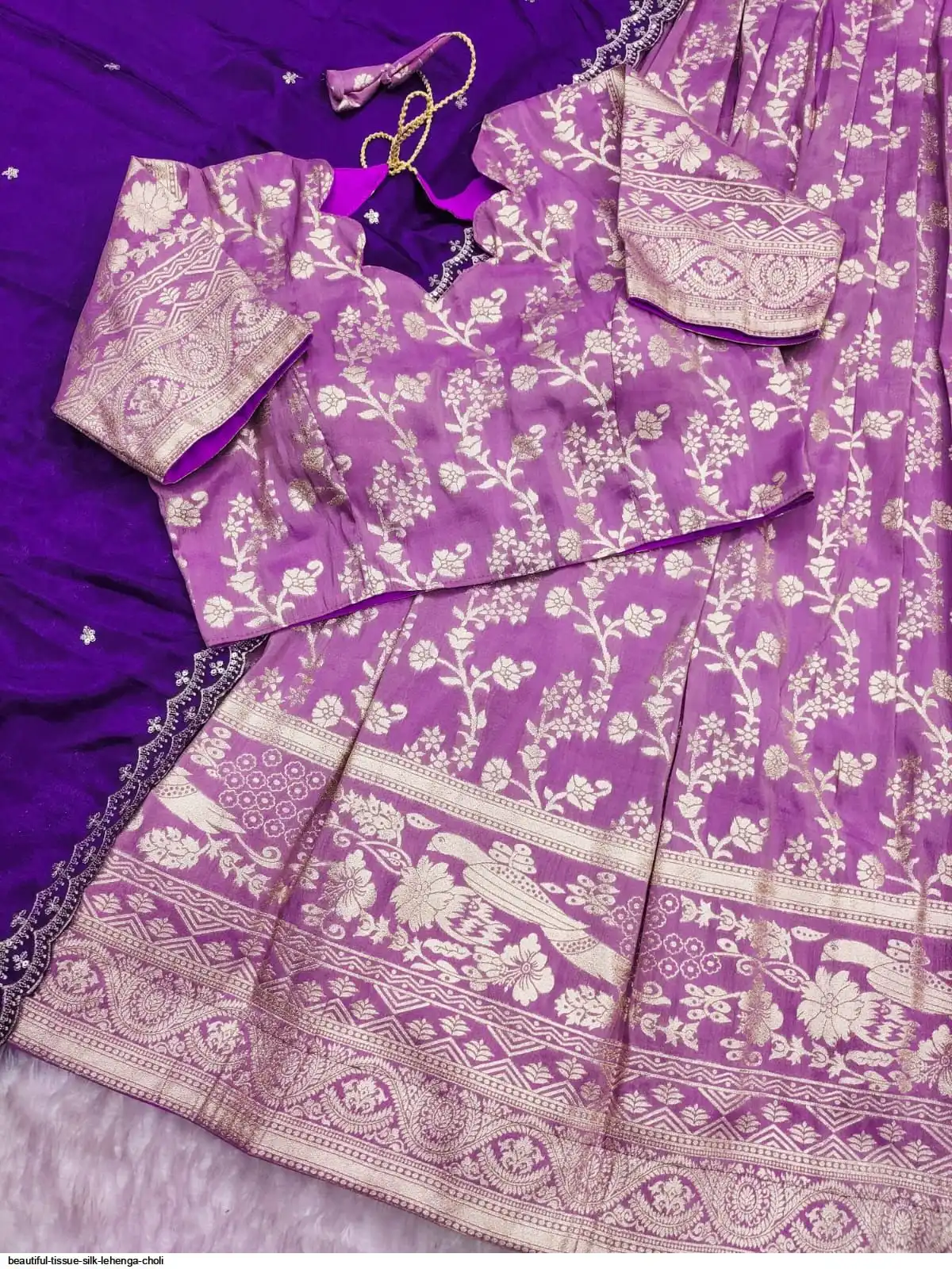 Lehengha Fabric : tissue silk with embroidery cut work lace