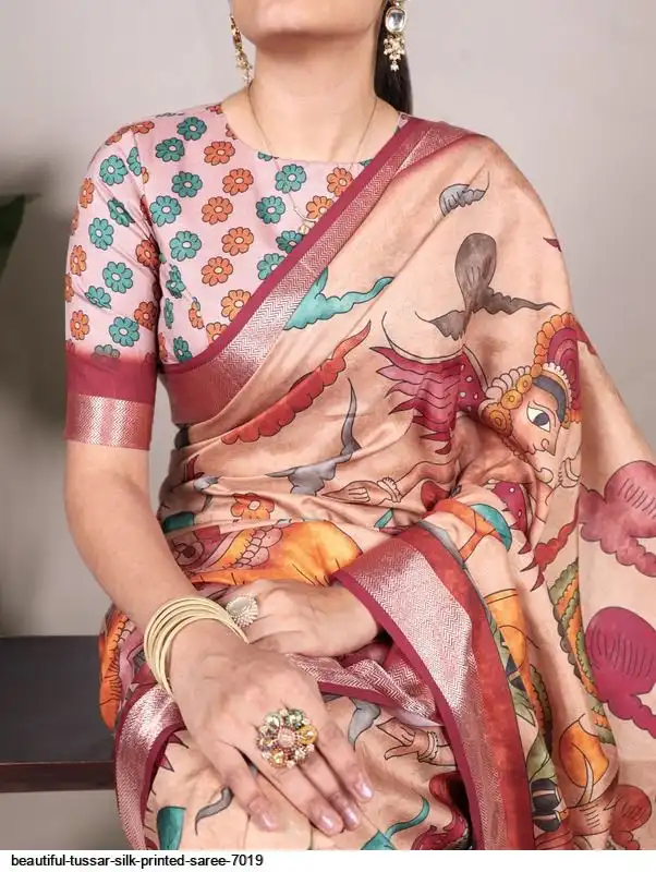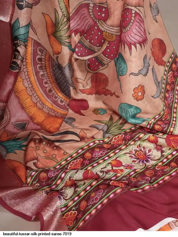 BEAUTIFUL TUSSAR SILK PRINTED SAREE 7019 7019MST