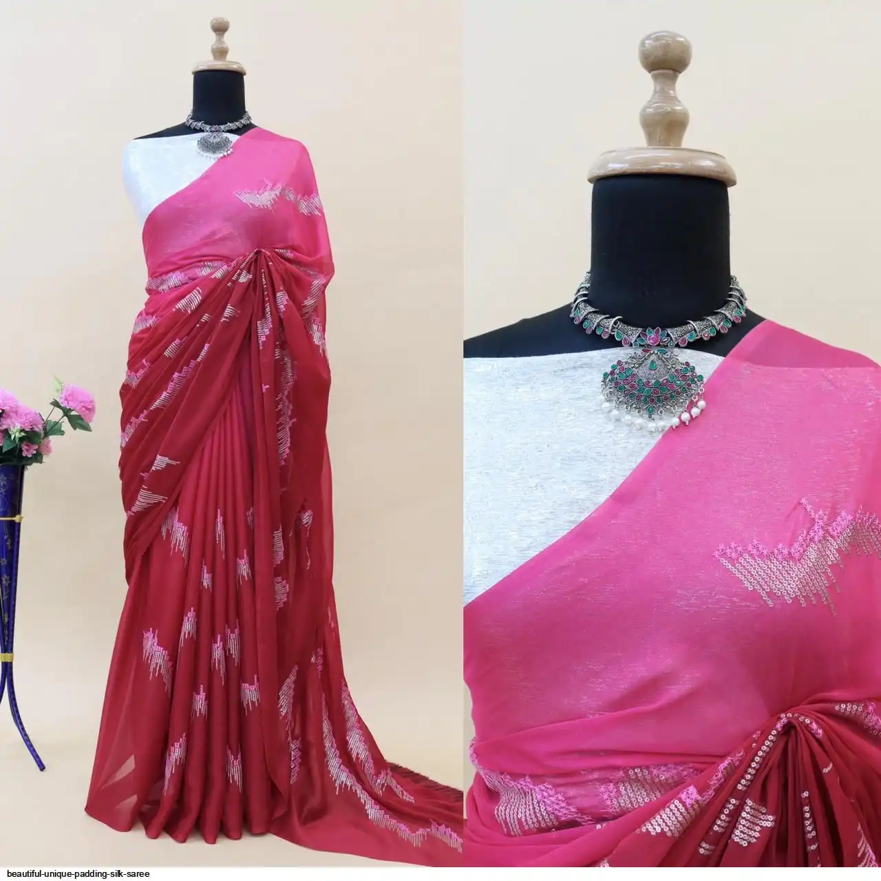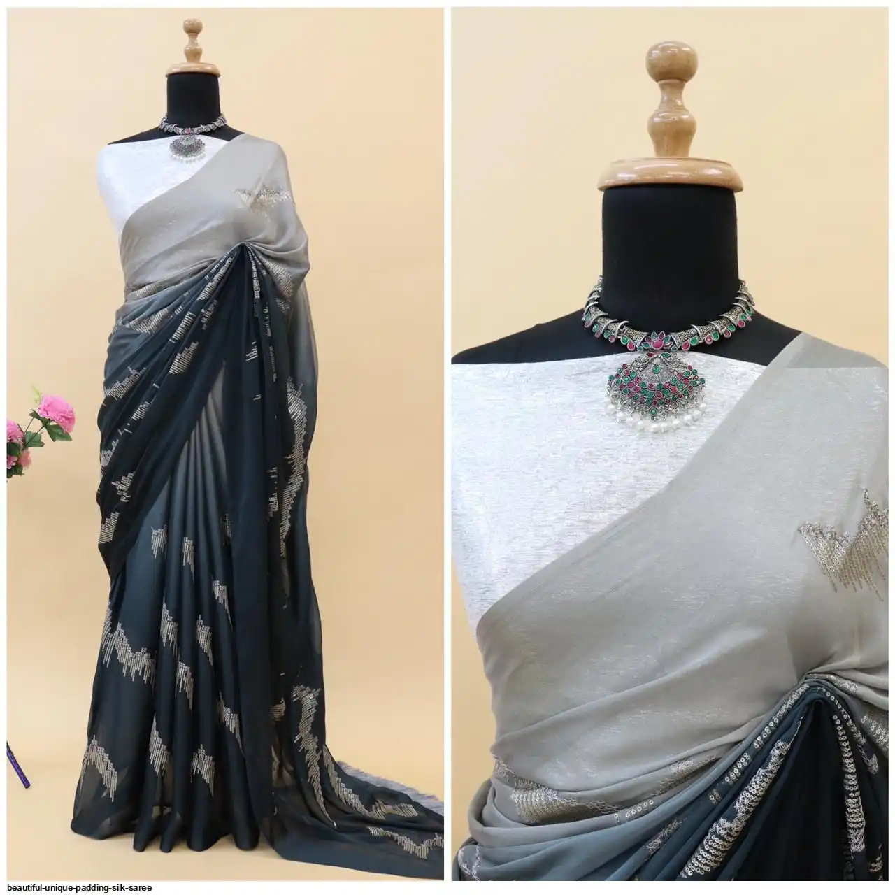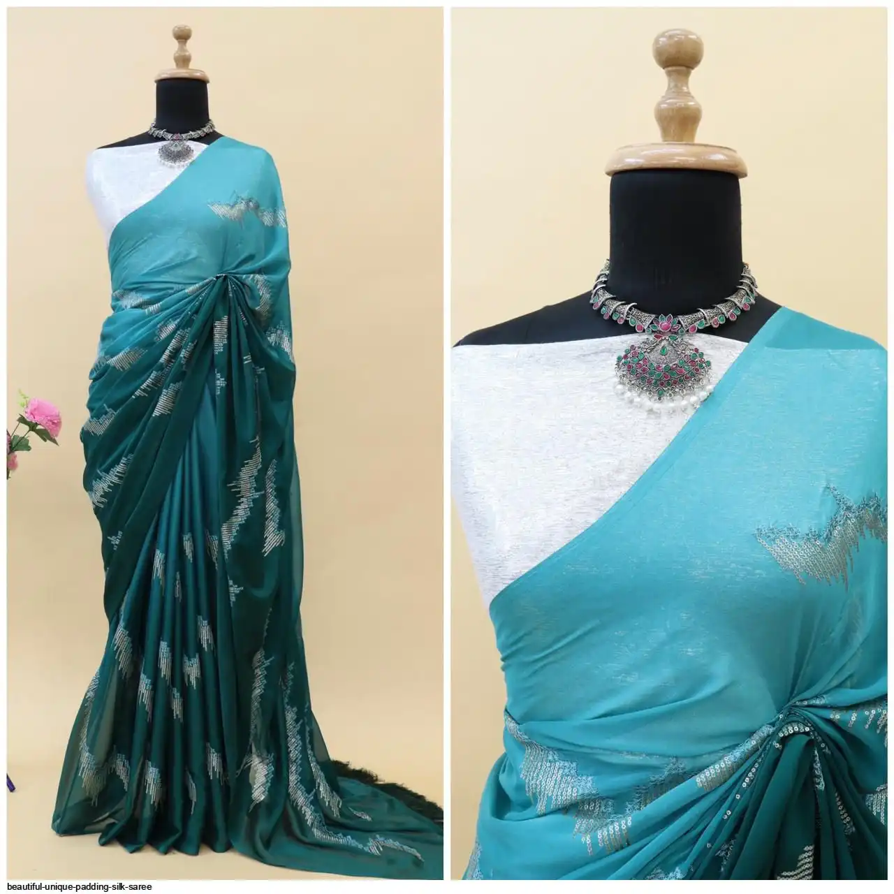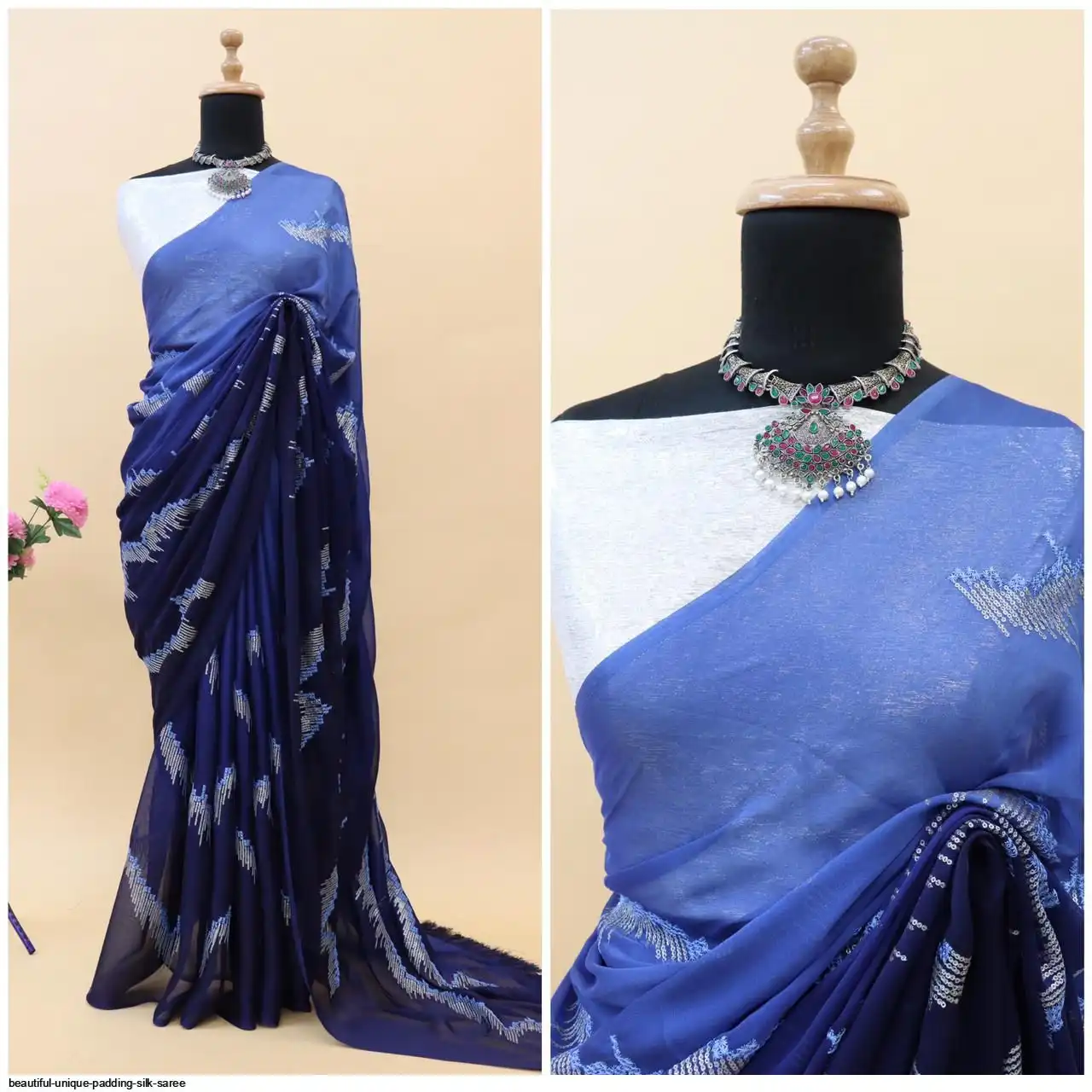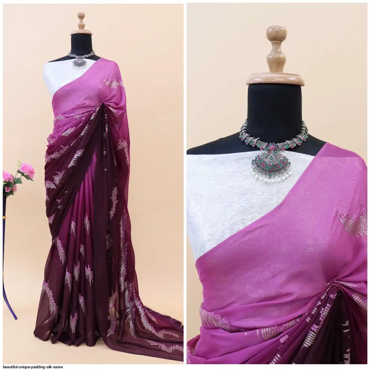 Beautiful padding silk saree with beautiful glitter sequence cover with tone to tone embroidery attach with latkan and silk blouse