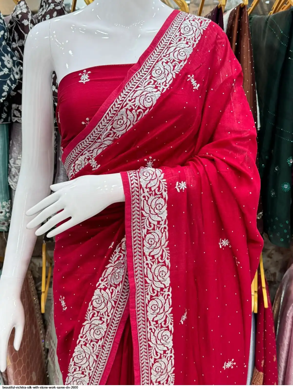 Work :- Heavy Silver Zari Embroidery+ Stone Work.