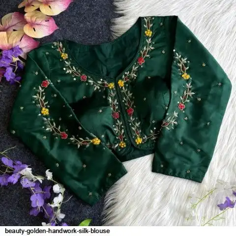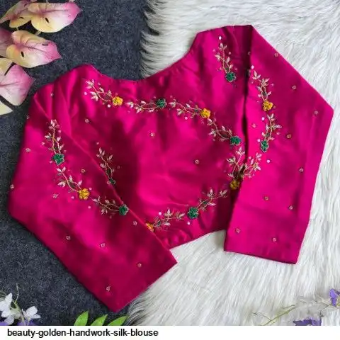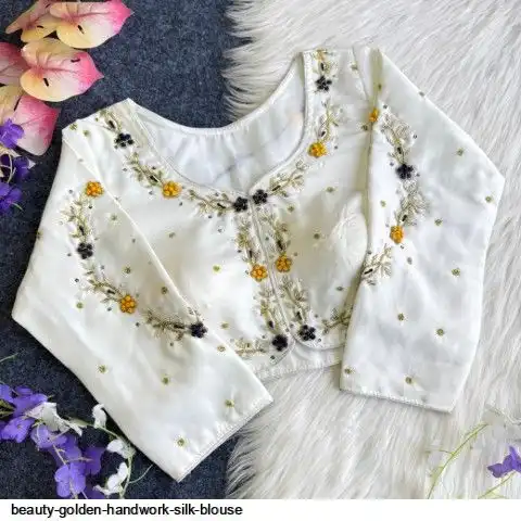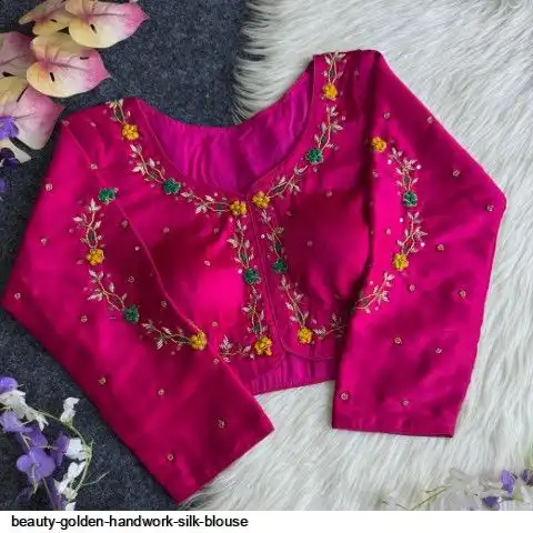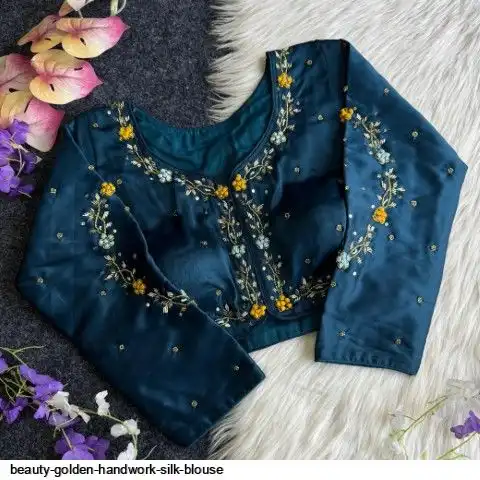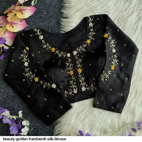 A beauty of golden handwork work with colourful thread and sequence all over blouse