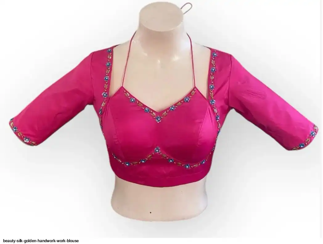 A beauty of golden handwork work with colourful thread and sequence all over blouse