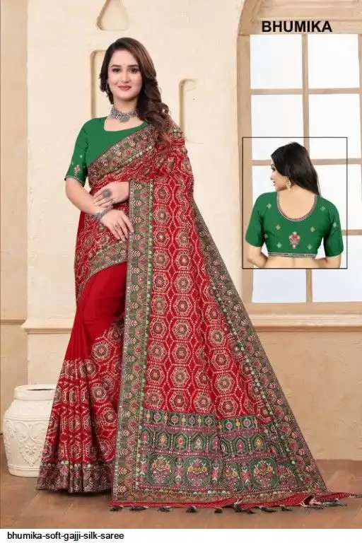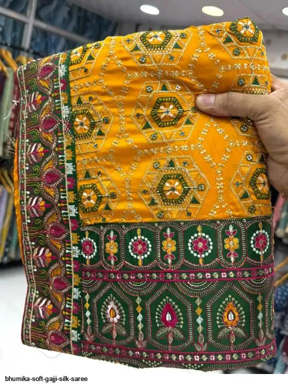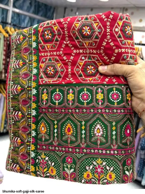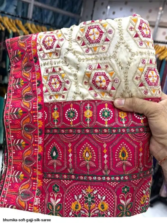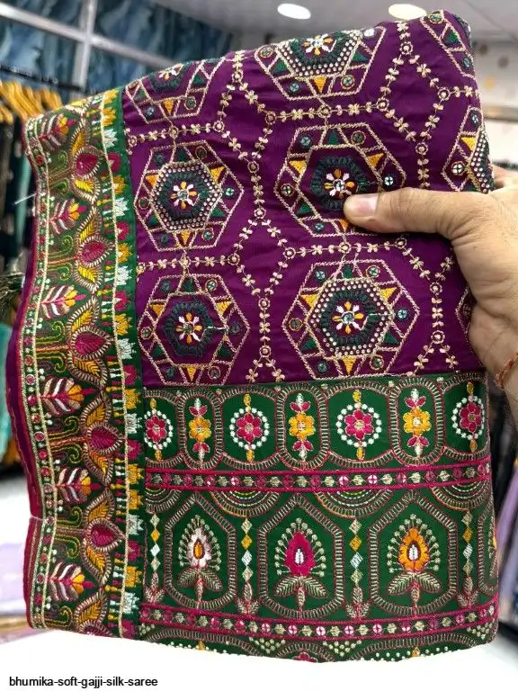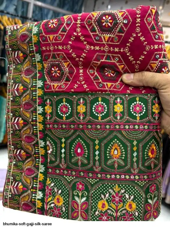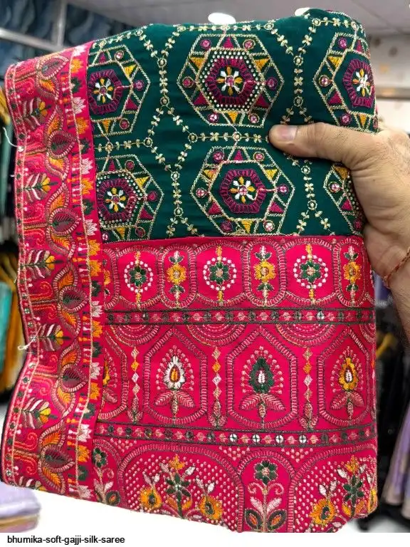 Work :- Full Heavy Multi Thread Kashmiri Embroidery Work With Stone Work & Box Pallu.