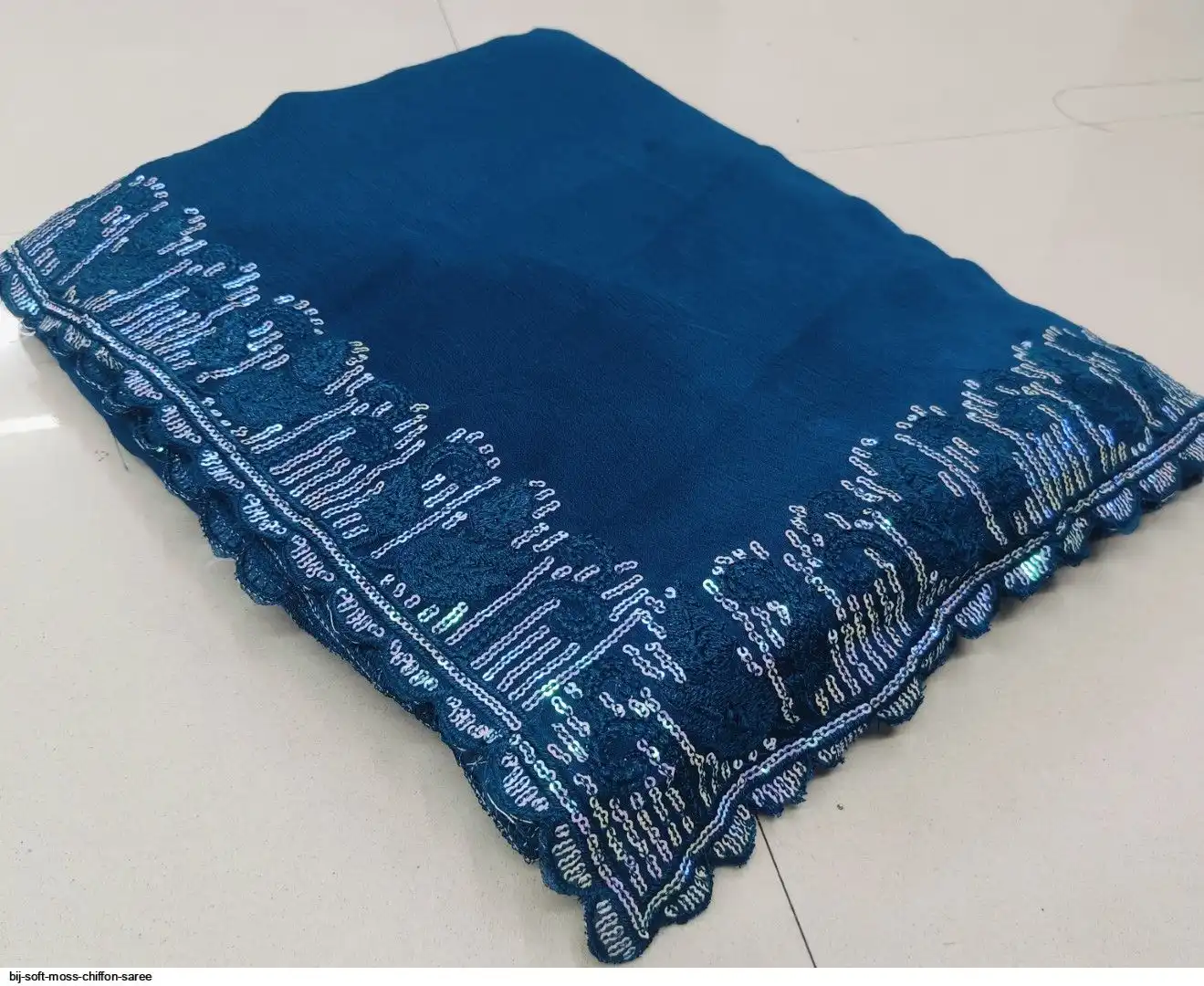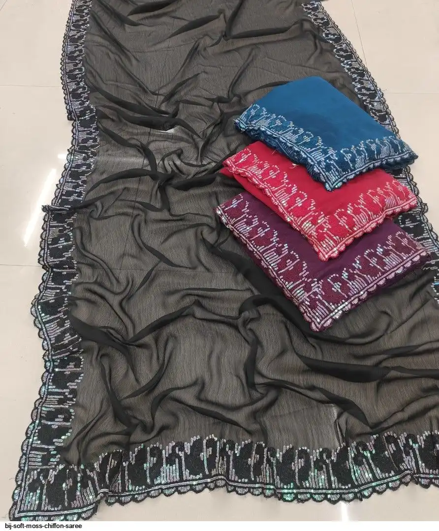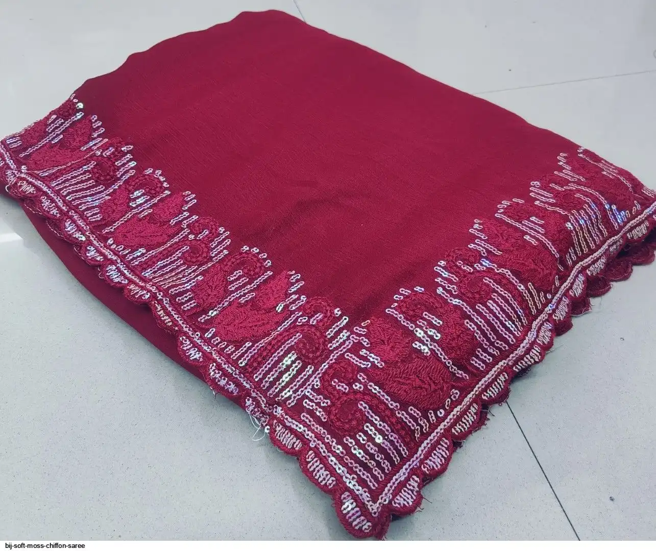 Saree Fabric soft moss chiffon with Embroidery work saree