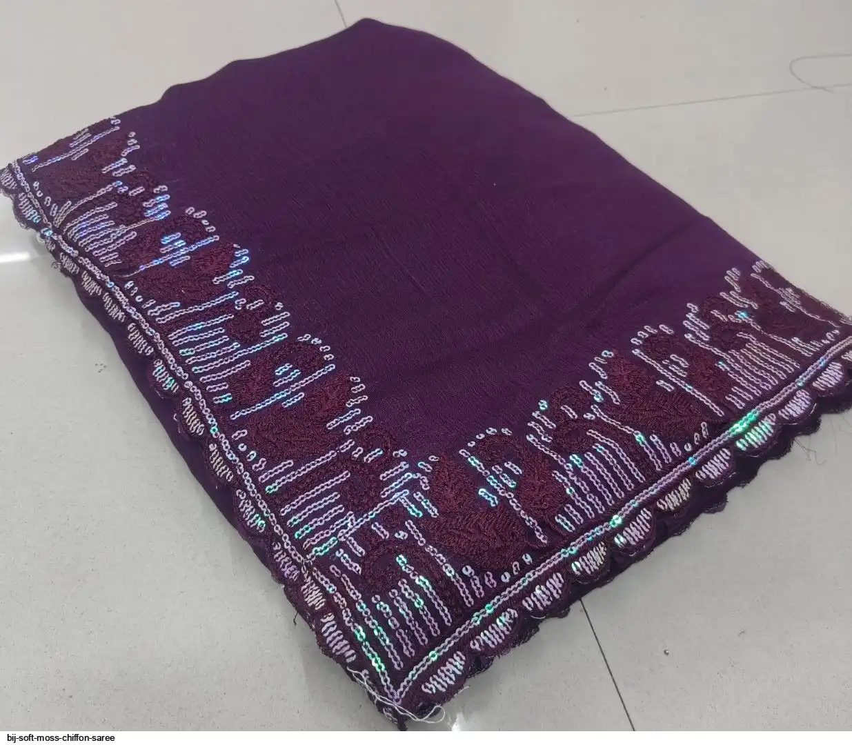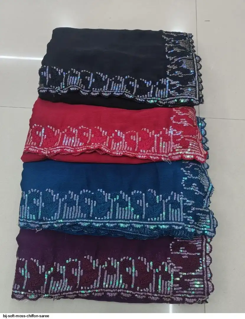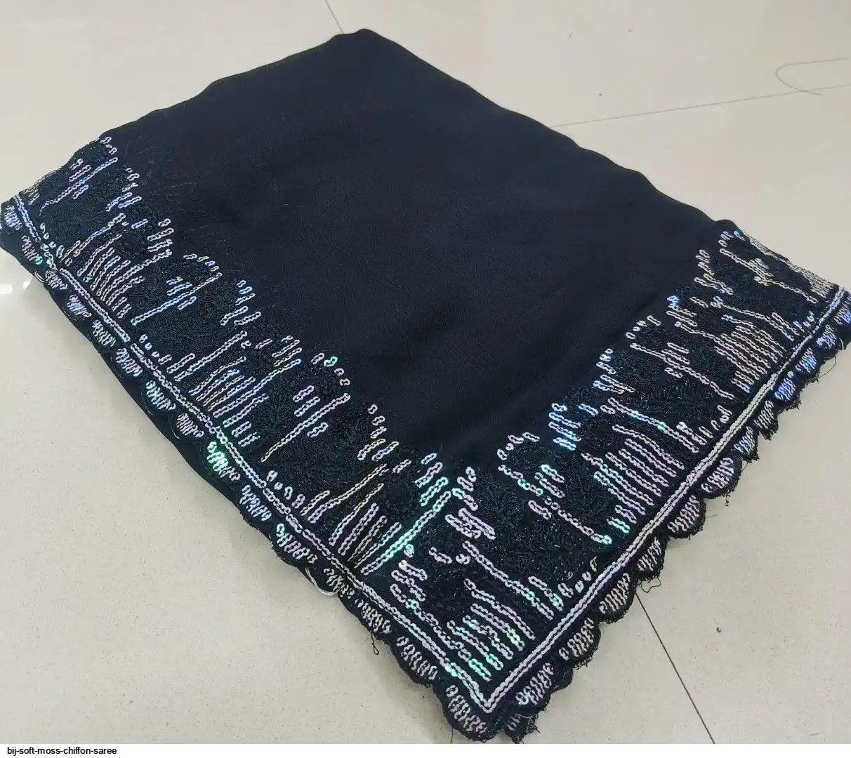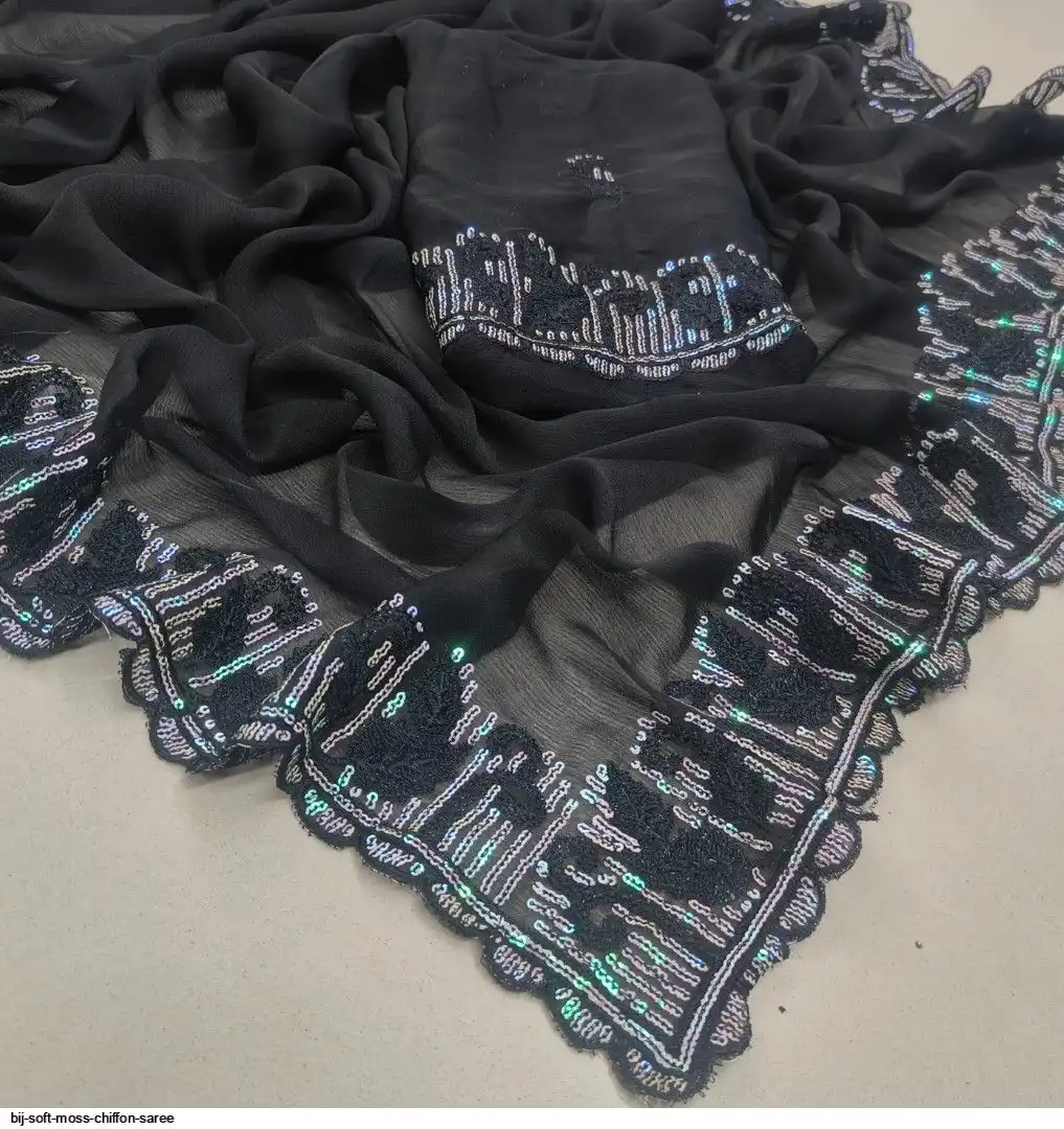 Saree Fabric soft moss chiffon with Embroidery work saree