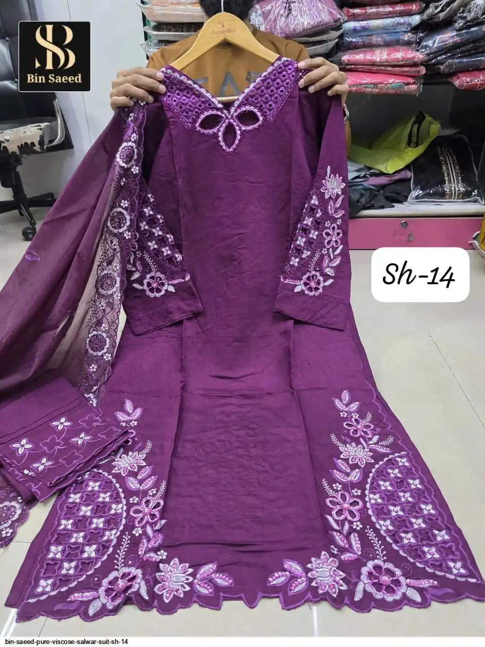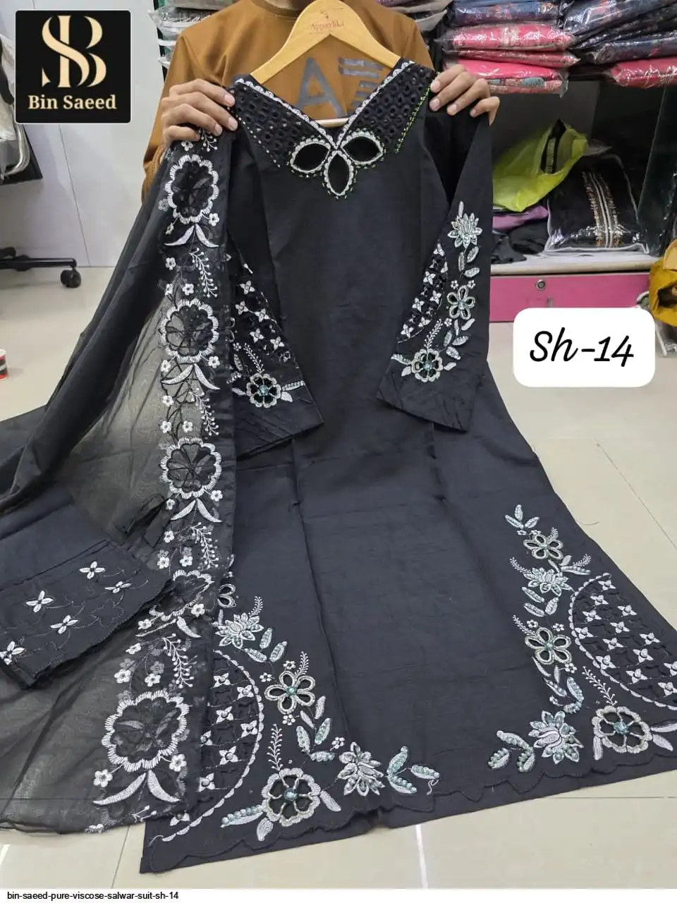 FABRICS :- PURE VISCOSE LINEN FABRIC TOP WITH HEANY HANDWORK EMB. & CUTWORK & VISCOSE LINEN BOTTOM ORGENZA DUPATTA