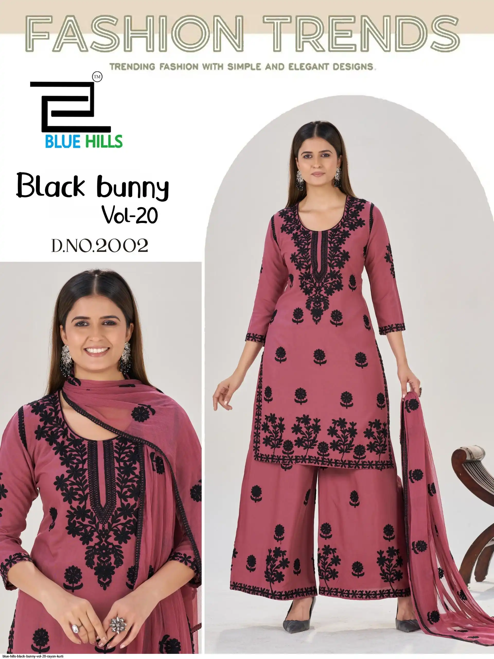 Top and plazzo black thread work