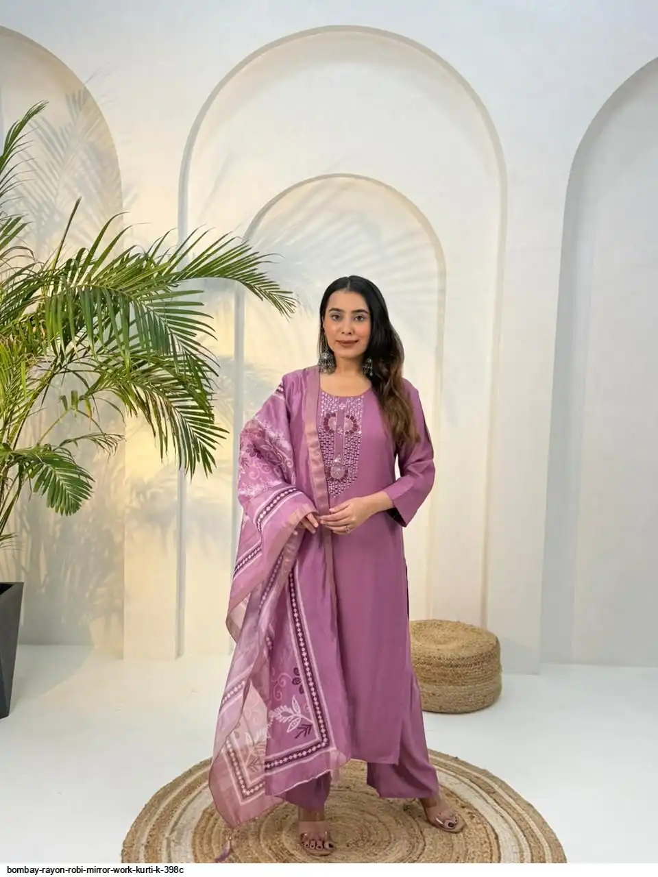 BOMBAY RAYON ROBI MIRROR WORK KURTI K 398C