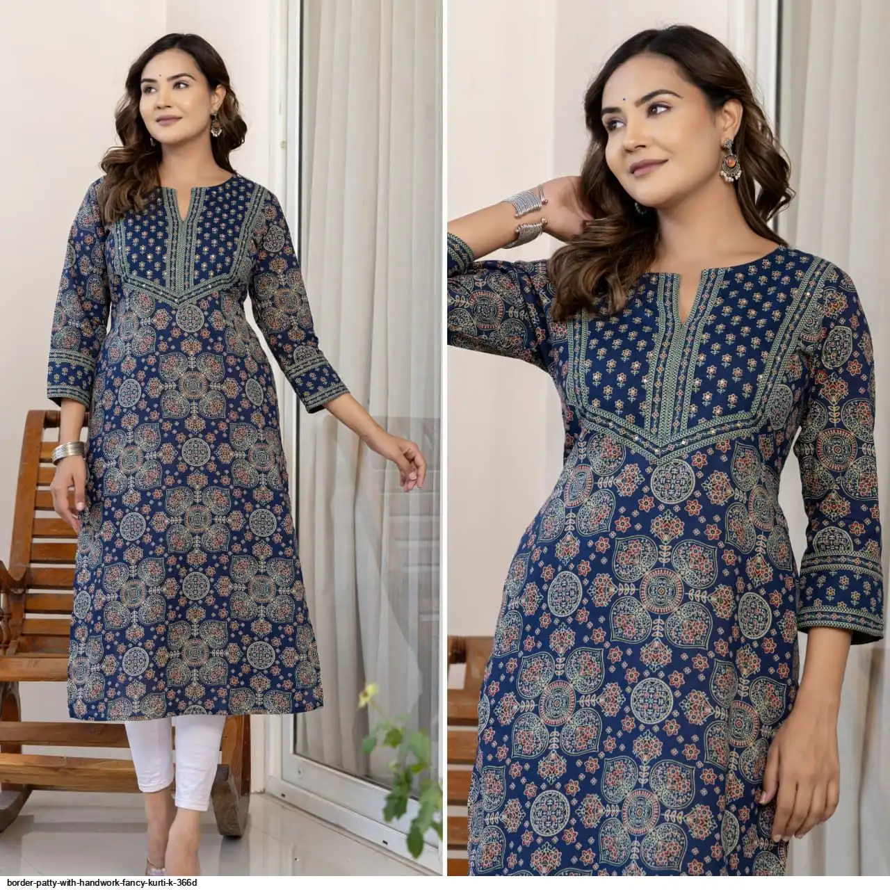 BORDER PATTY WITH HANDWORK FANCY KURTI K 366D