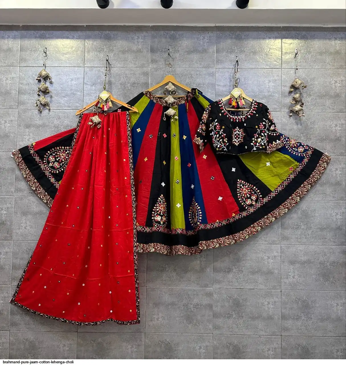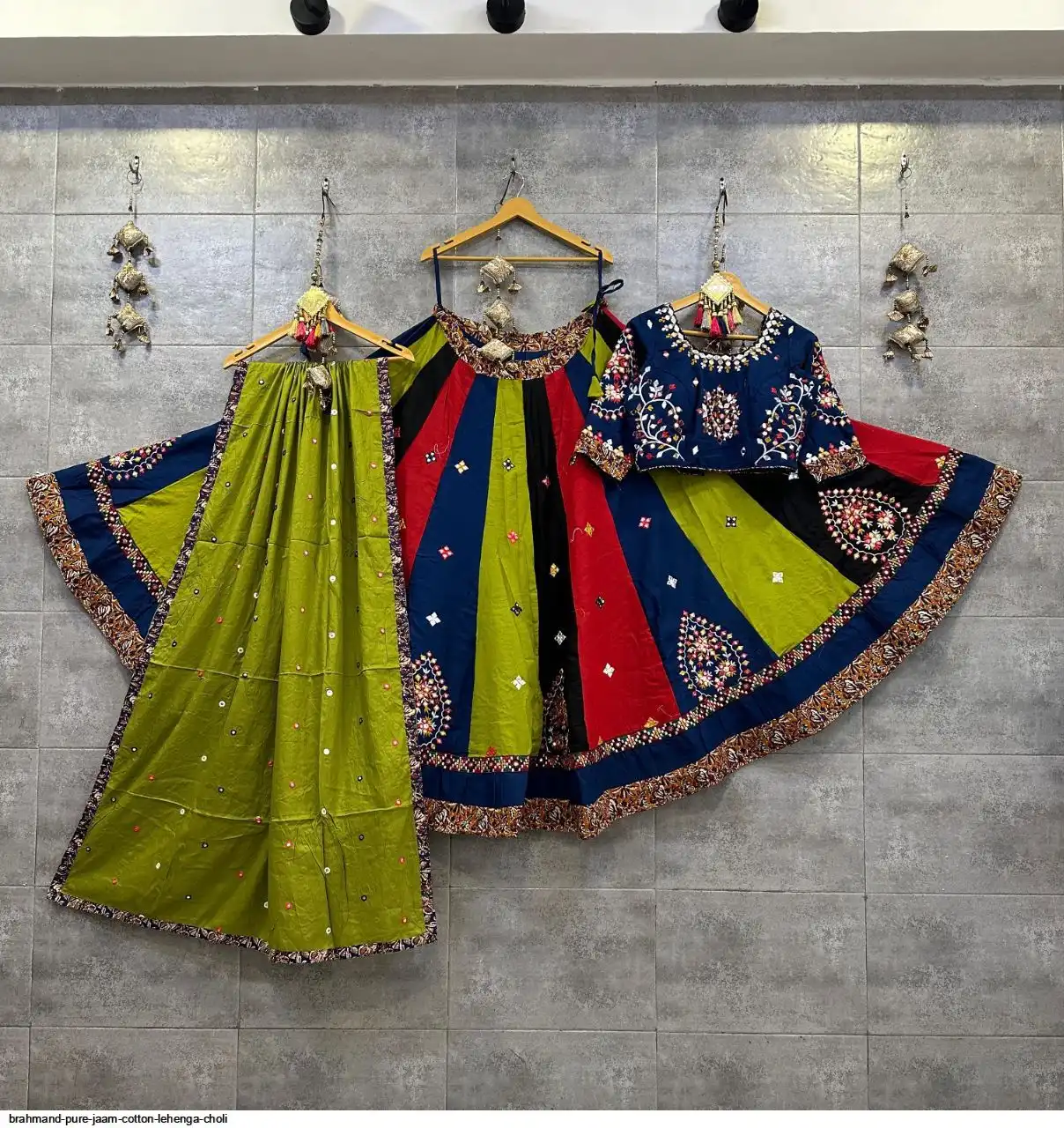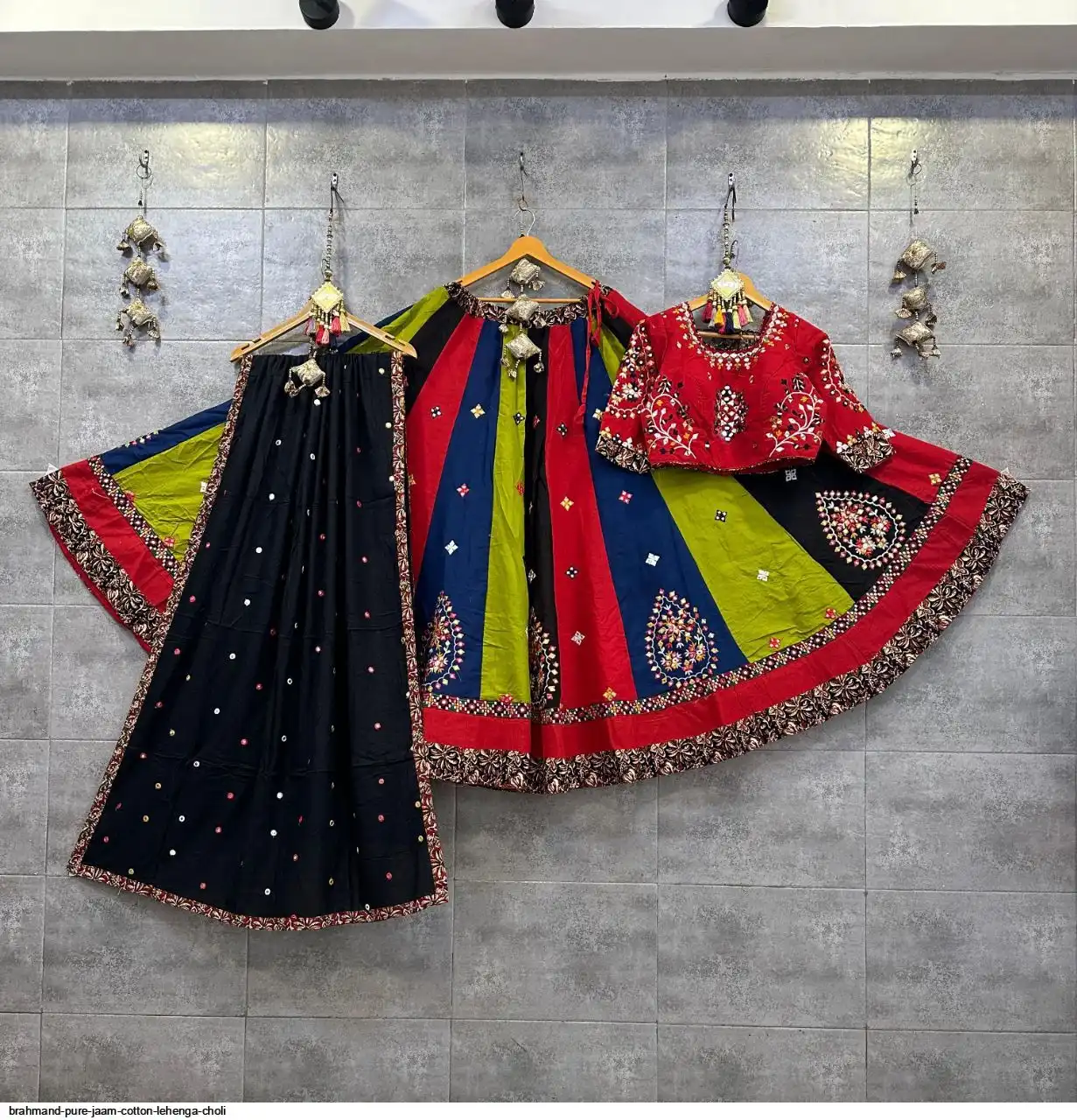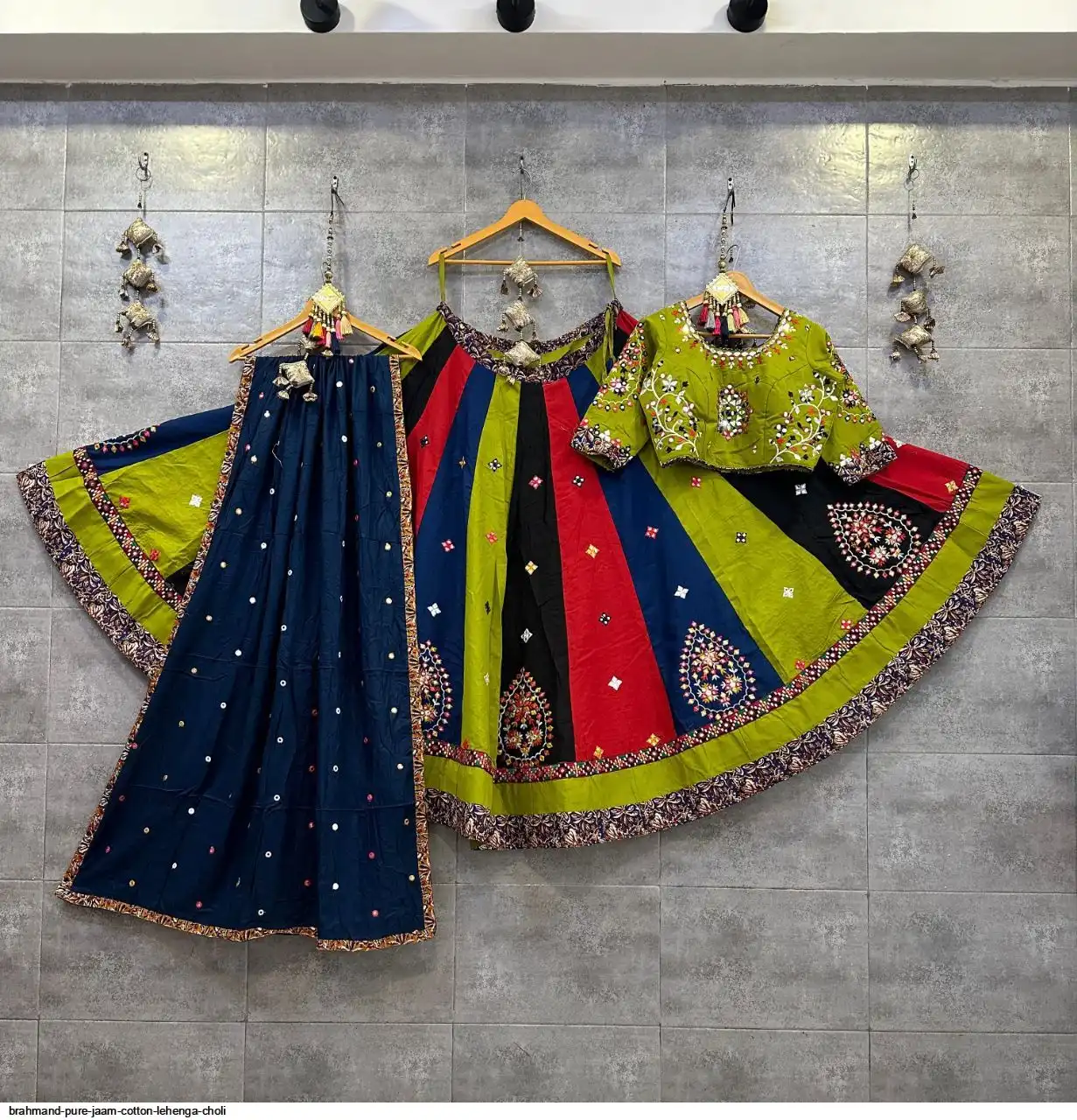 Pure jaam cotton multi kali chaniya choli with original mirror work blouse