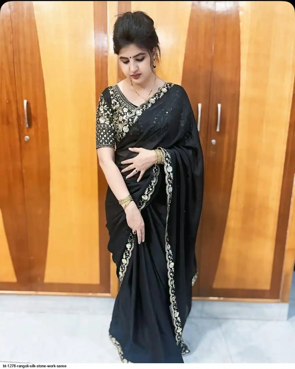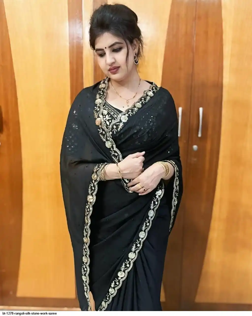 SAREE : HEAVY SOFT BLACK RANGOLI SILK FABRIC ON HEAVY EMBROIDERY ZARI & SEQUENCES ON LACE CUT WORK BORDER AND STONE WORK ON SAREE