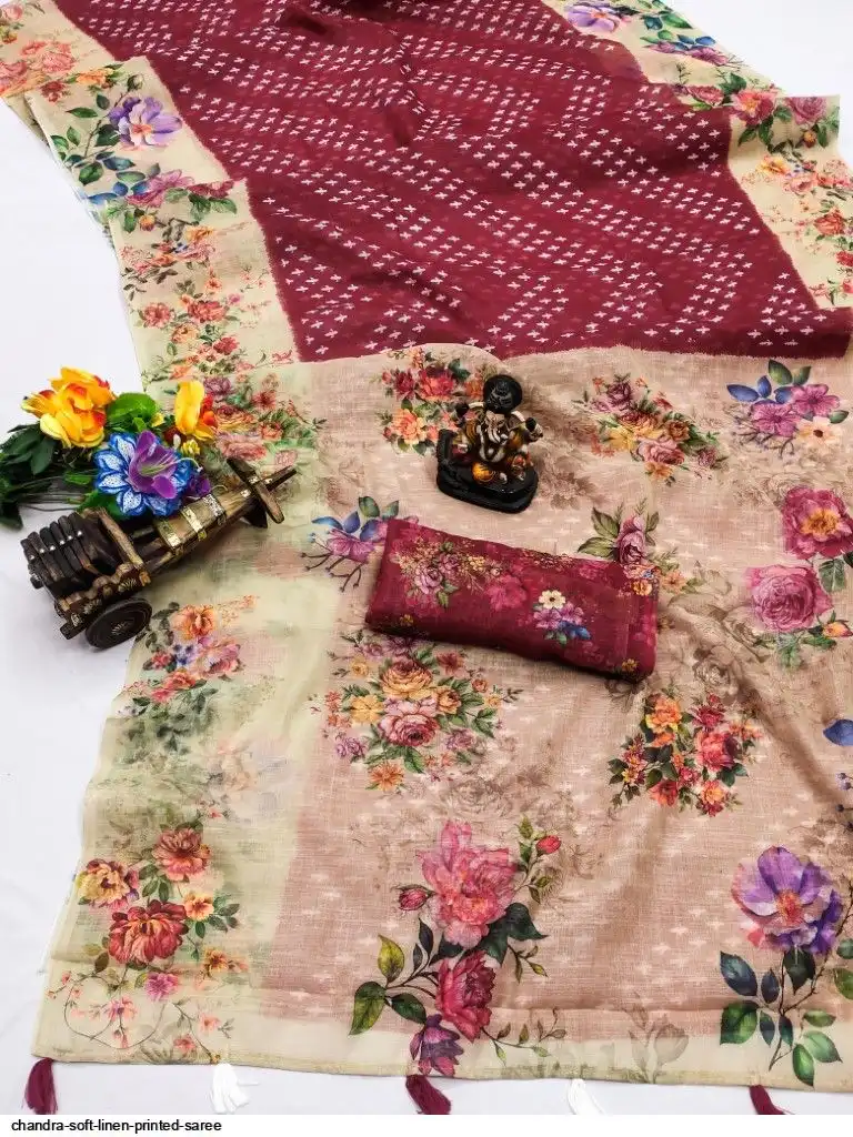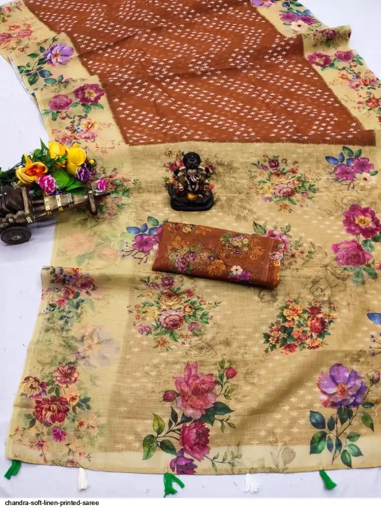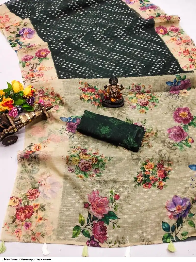 🪼Classy Rich Digital Printed Flower Pallu With Beautiful Tessels🪼