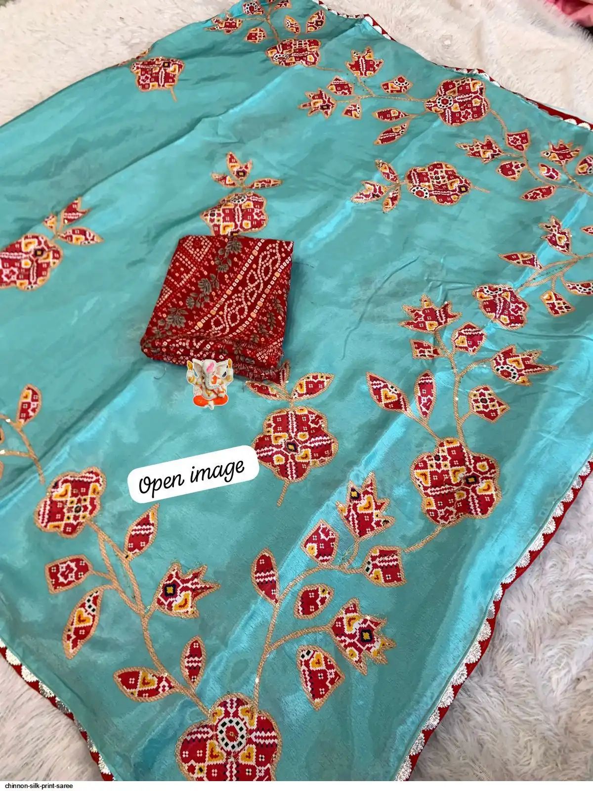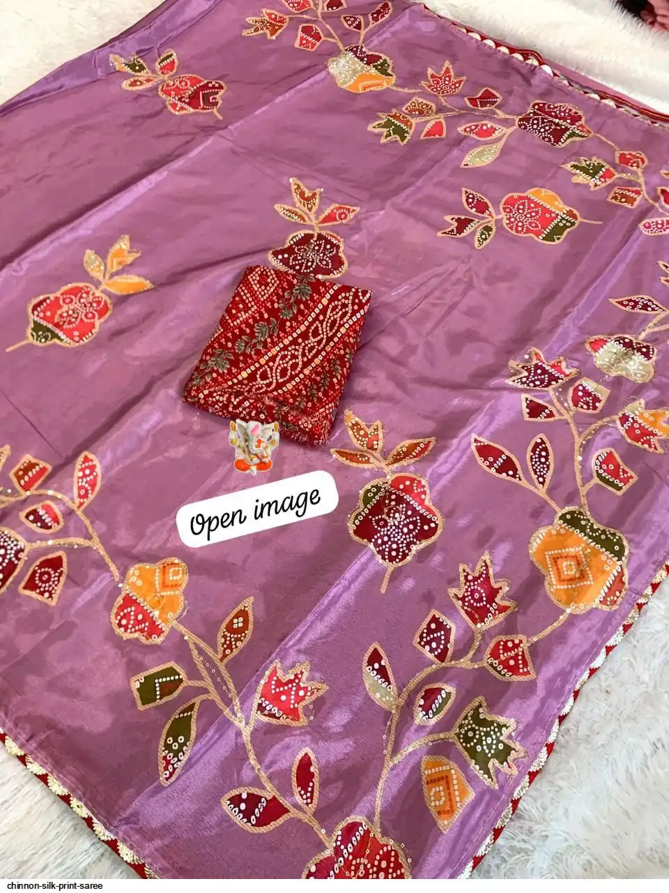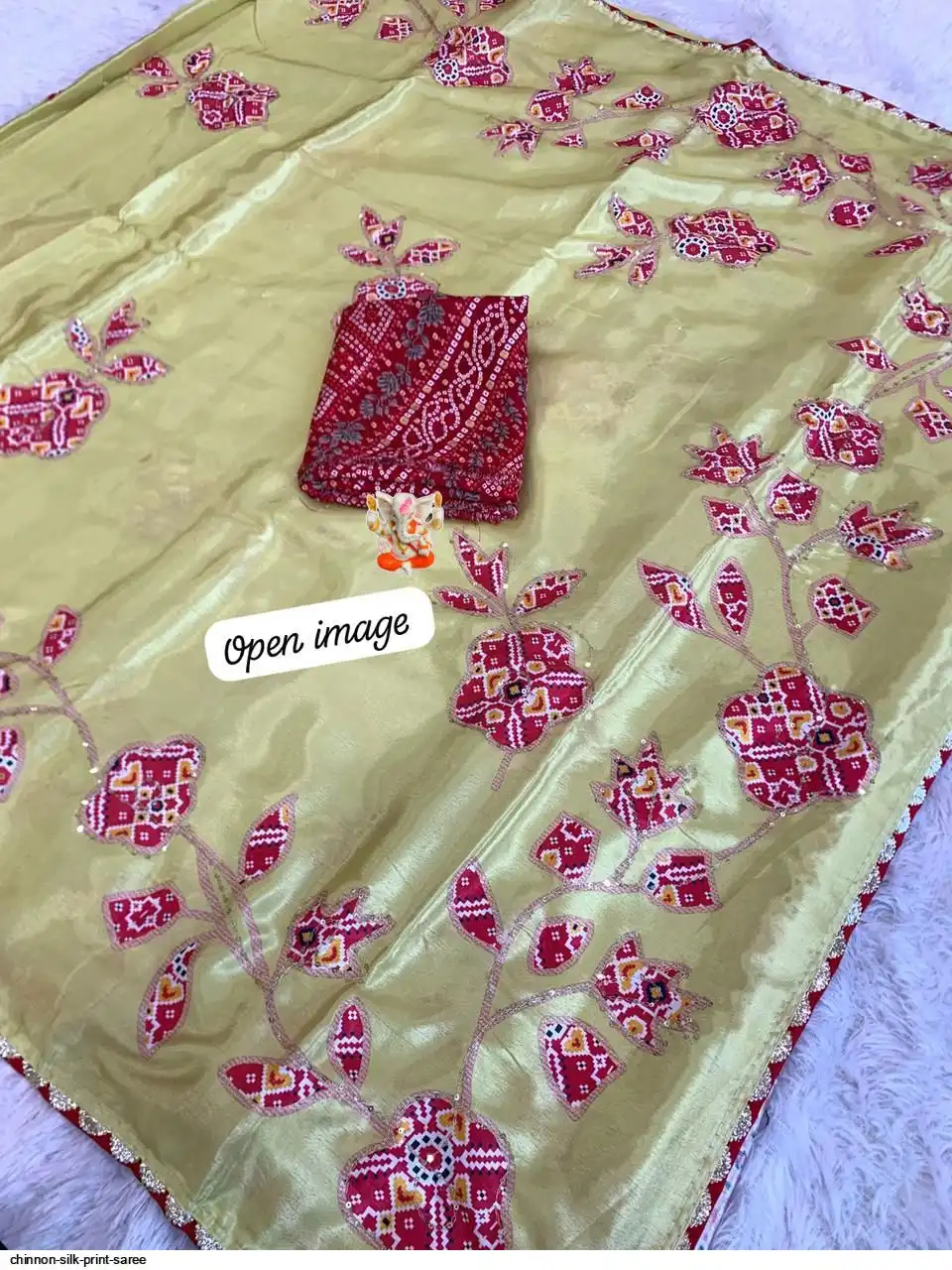 Chinnon silk print sarees with beautiful Kantha work in all over saree with Fancy lace borders