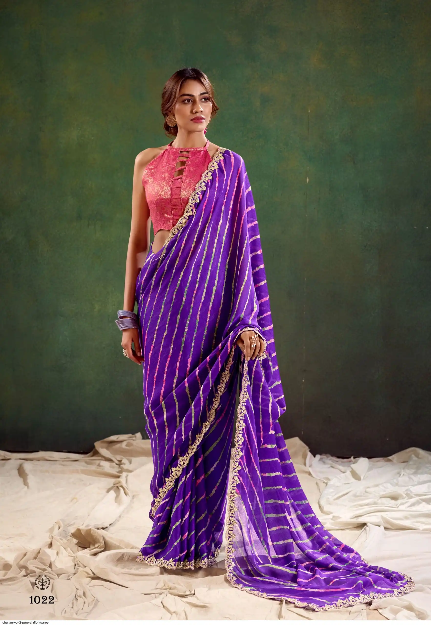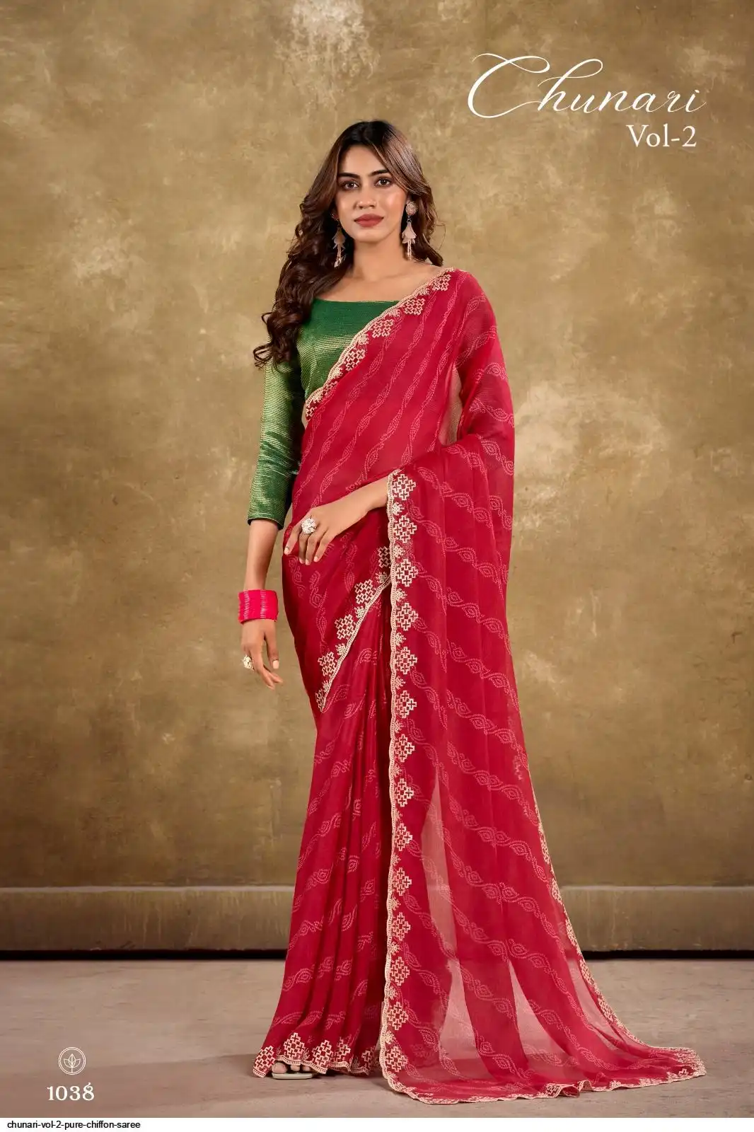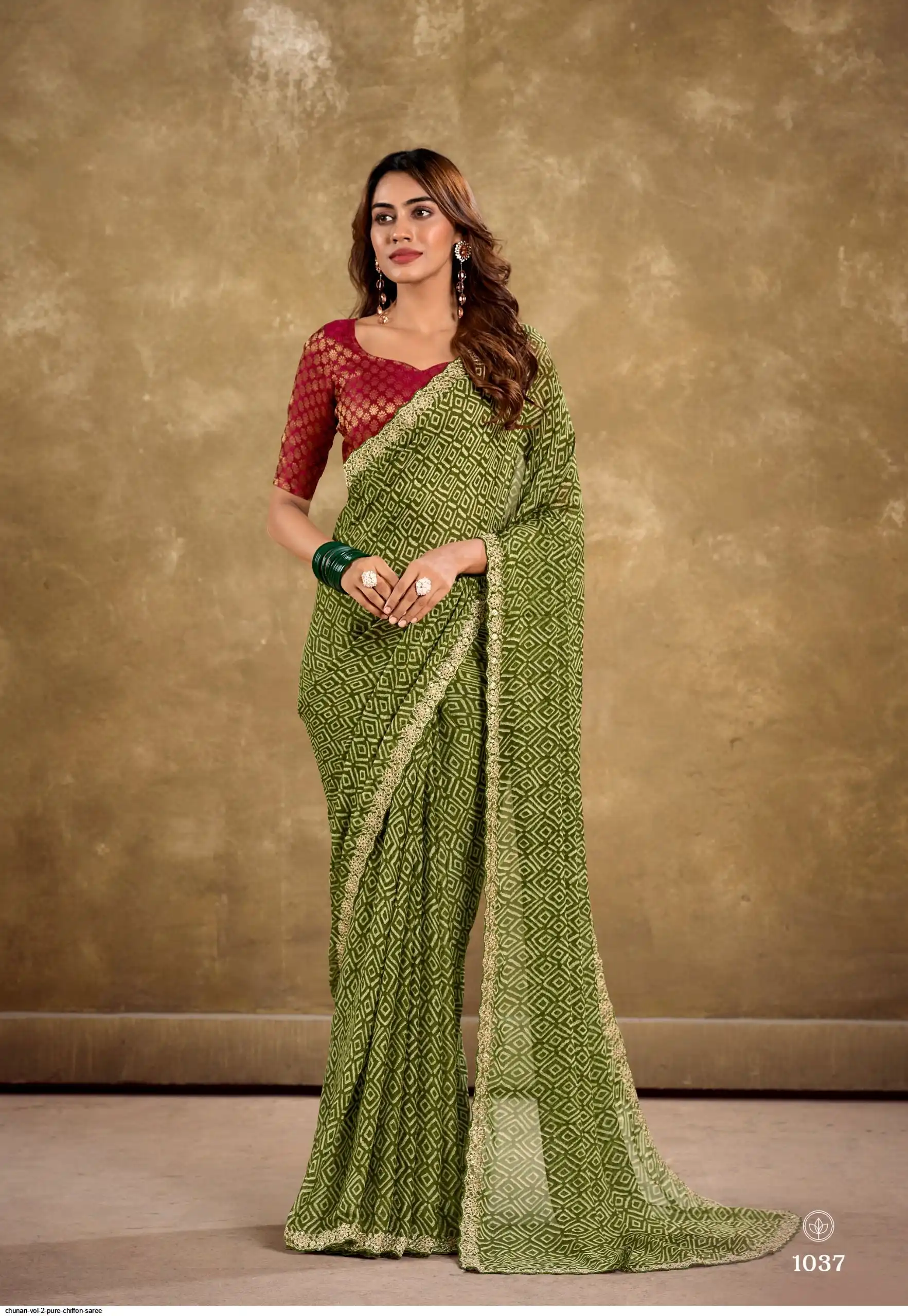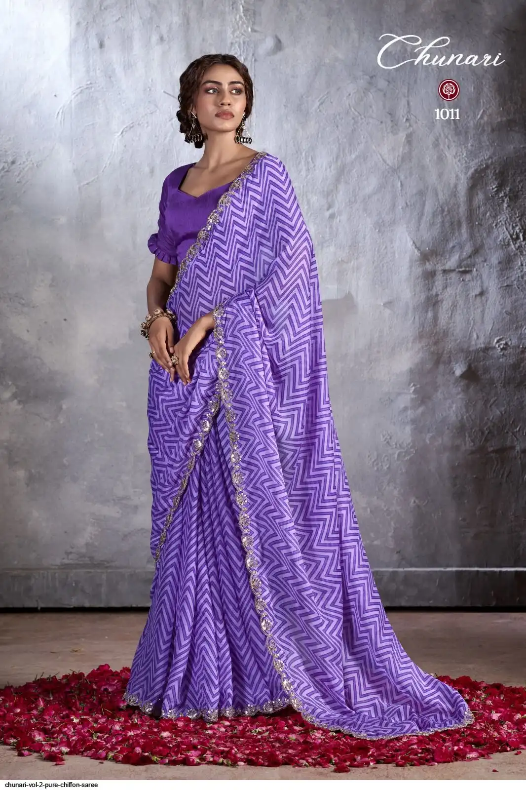 Fabric - Pure Chiffon With Cutwork Embroidery Work C Pallu Border With Jacquard blouse