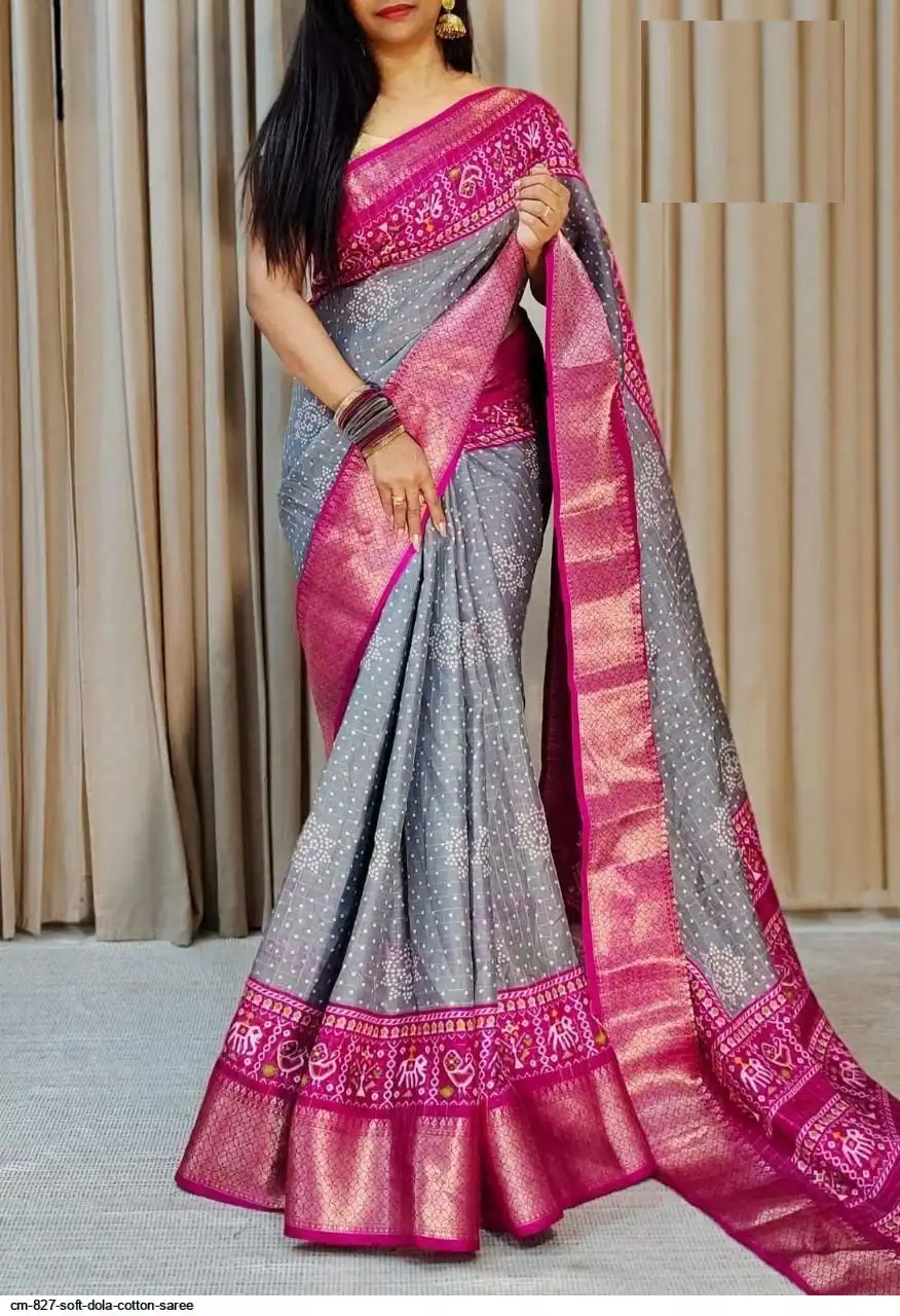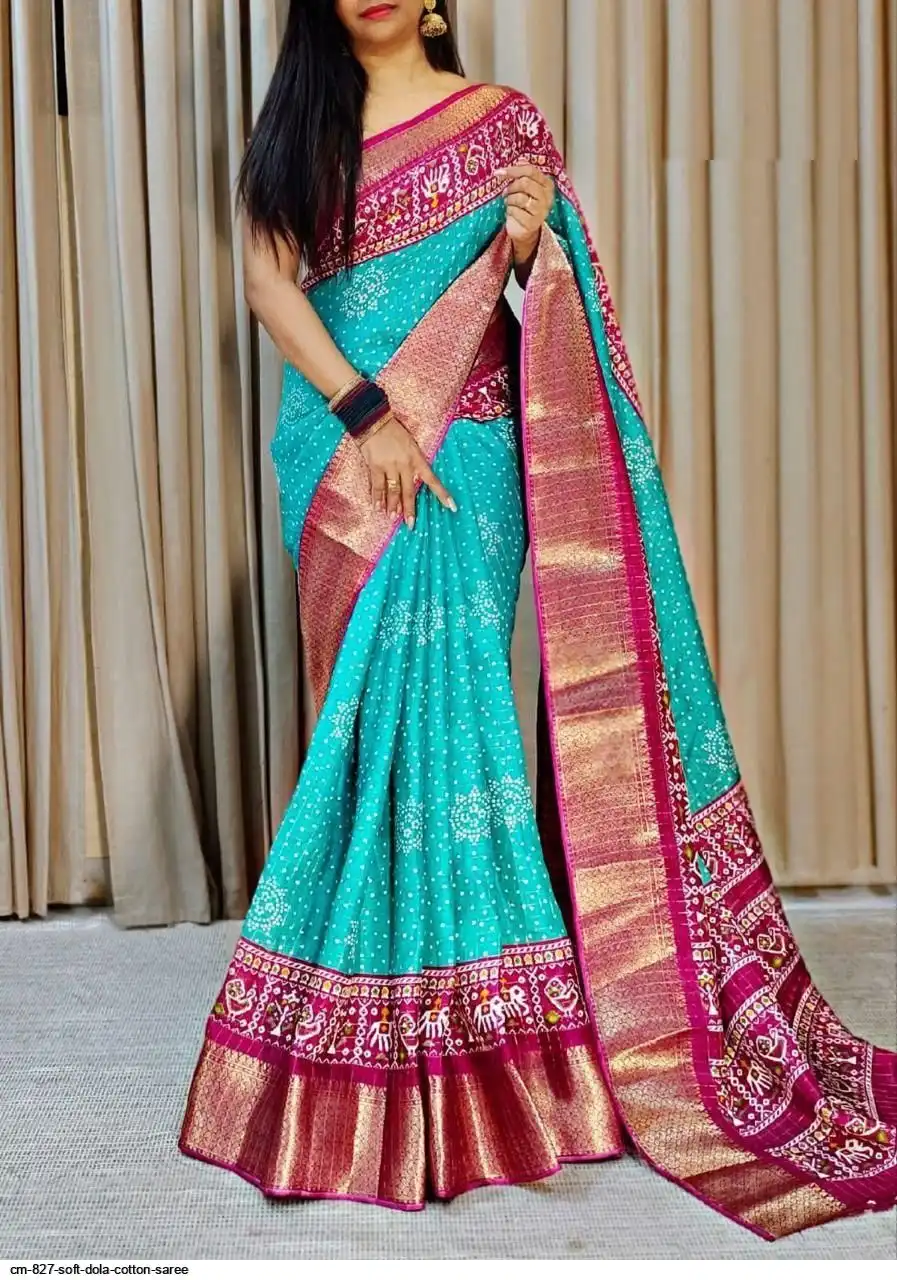 Fabric-Saree- soft Dola cotton.(6.30m with print blouse)*