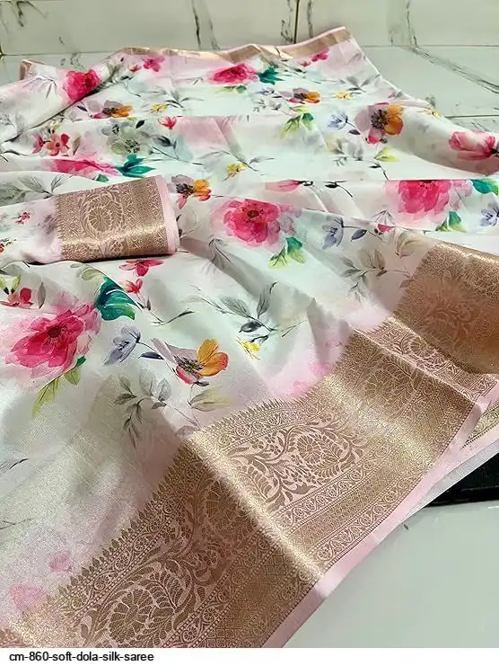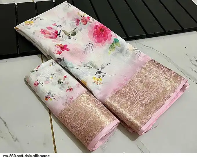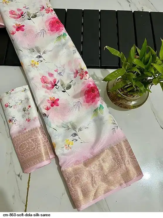 Fabric-Saree- soft Dola silk .(6.30m with print blouse)*