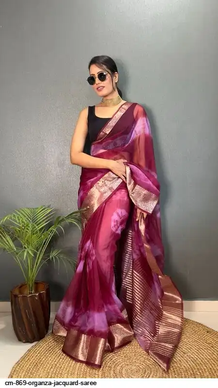 Kora Organza jacquard Soft Saree With Pallu & Running Blouse
