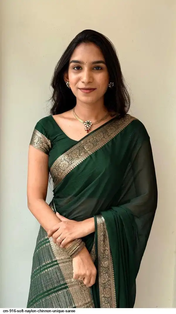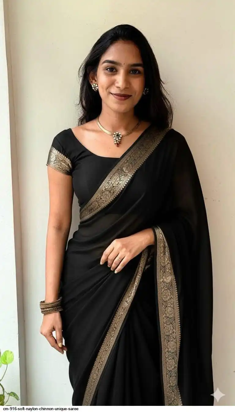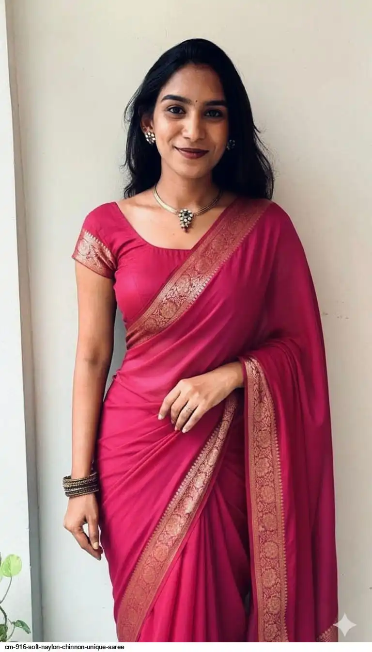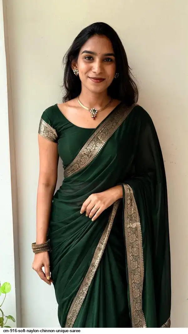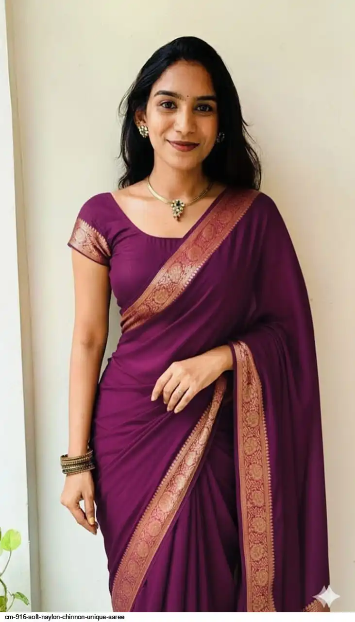 Soft Naylon chinnon Saree With Pallu & Running Blouse