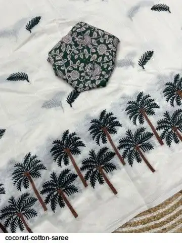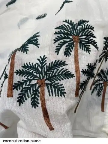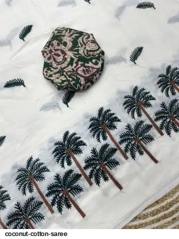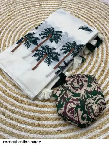 Pure Chandari cotton with beautiful Coconut design worked all over in 5.50 meter saree with tassels on pallu