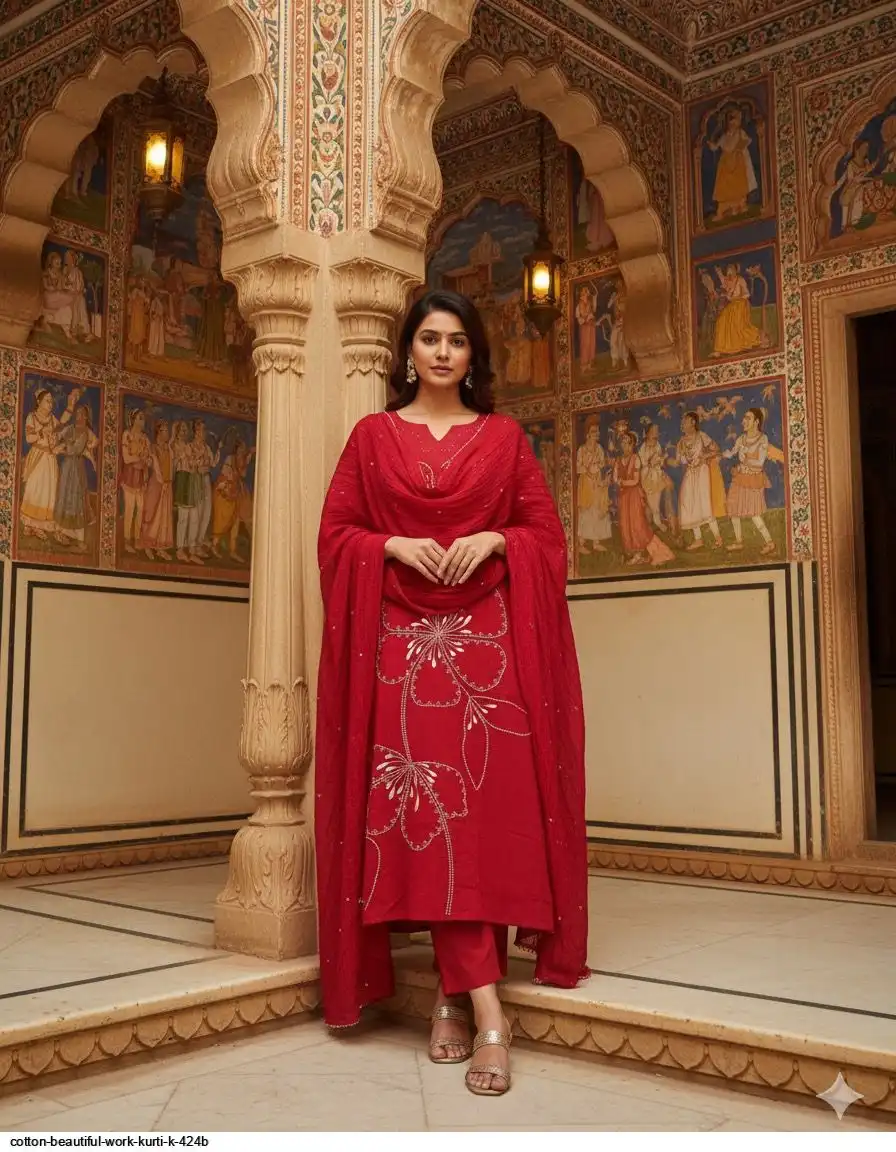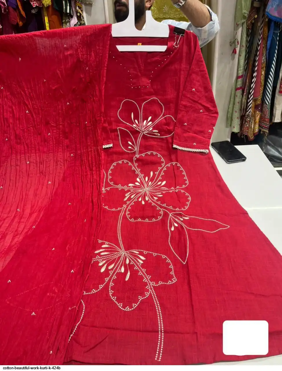 COTTON BEAUTIFUL WORK KURTI K 424B