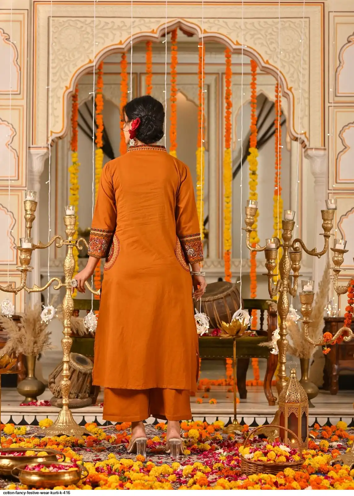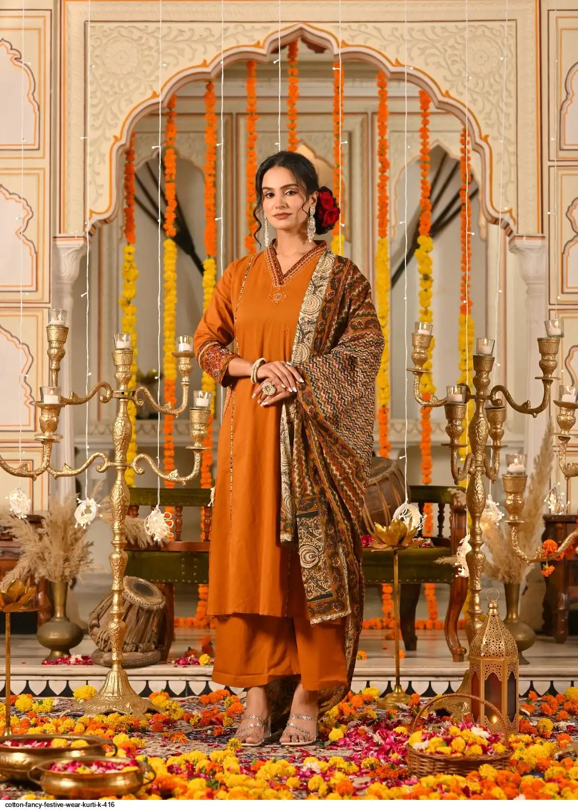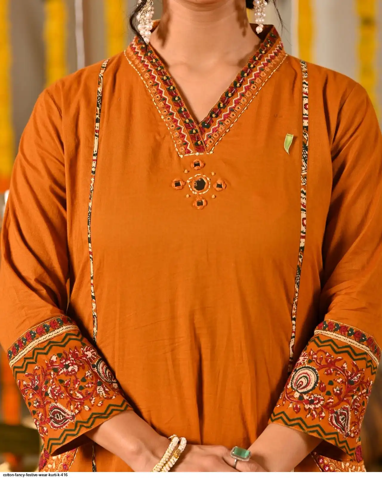 COTTON FANCY FESTIVE WEAR KURTI K 416