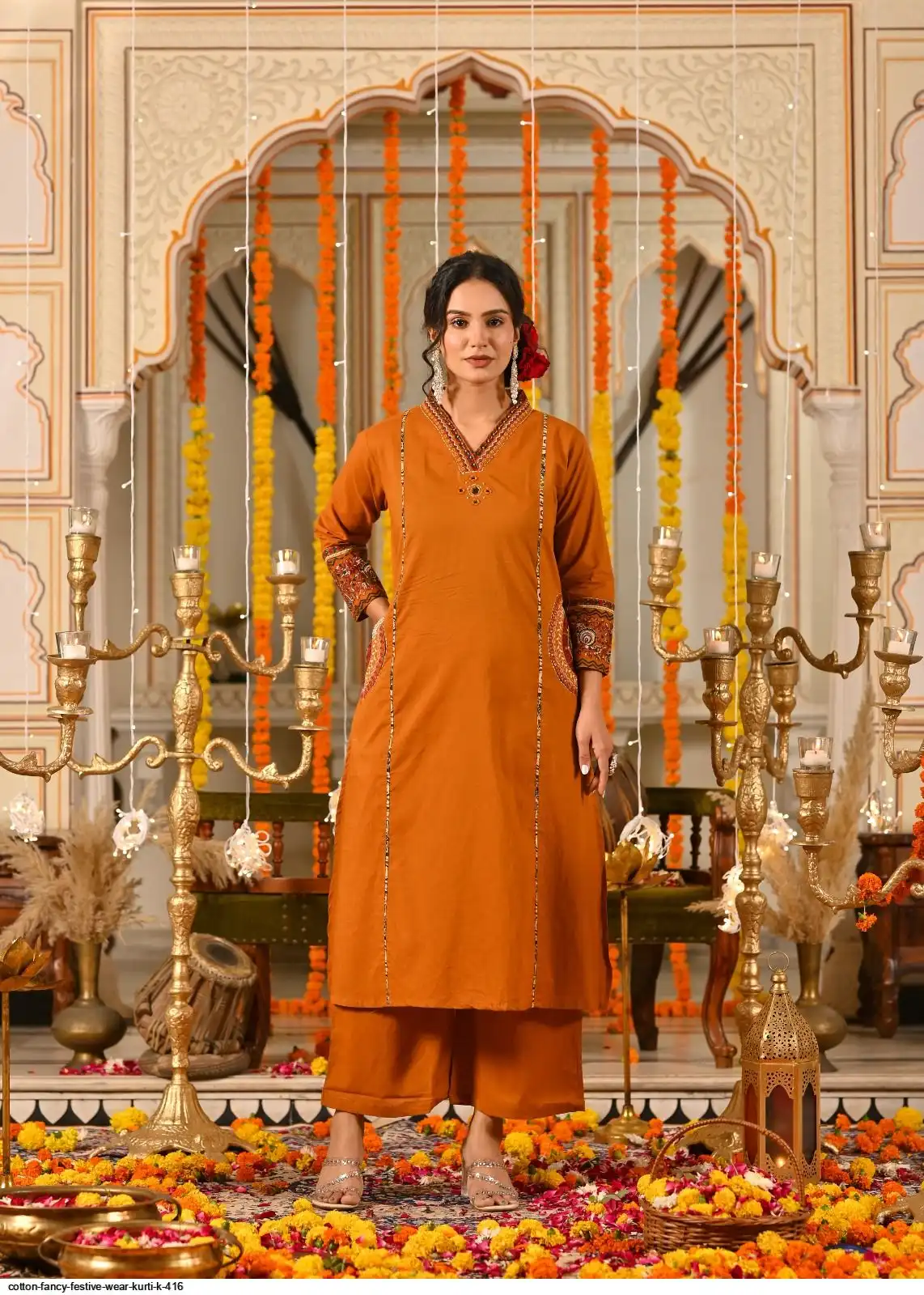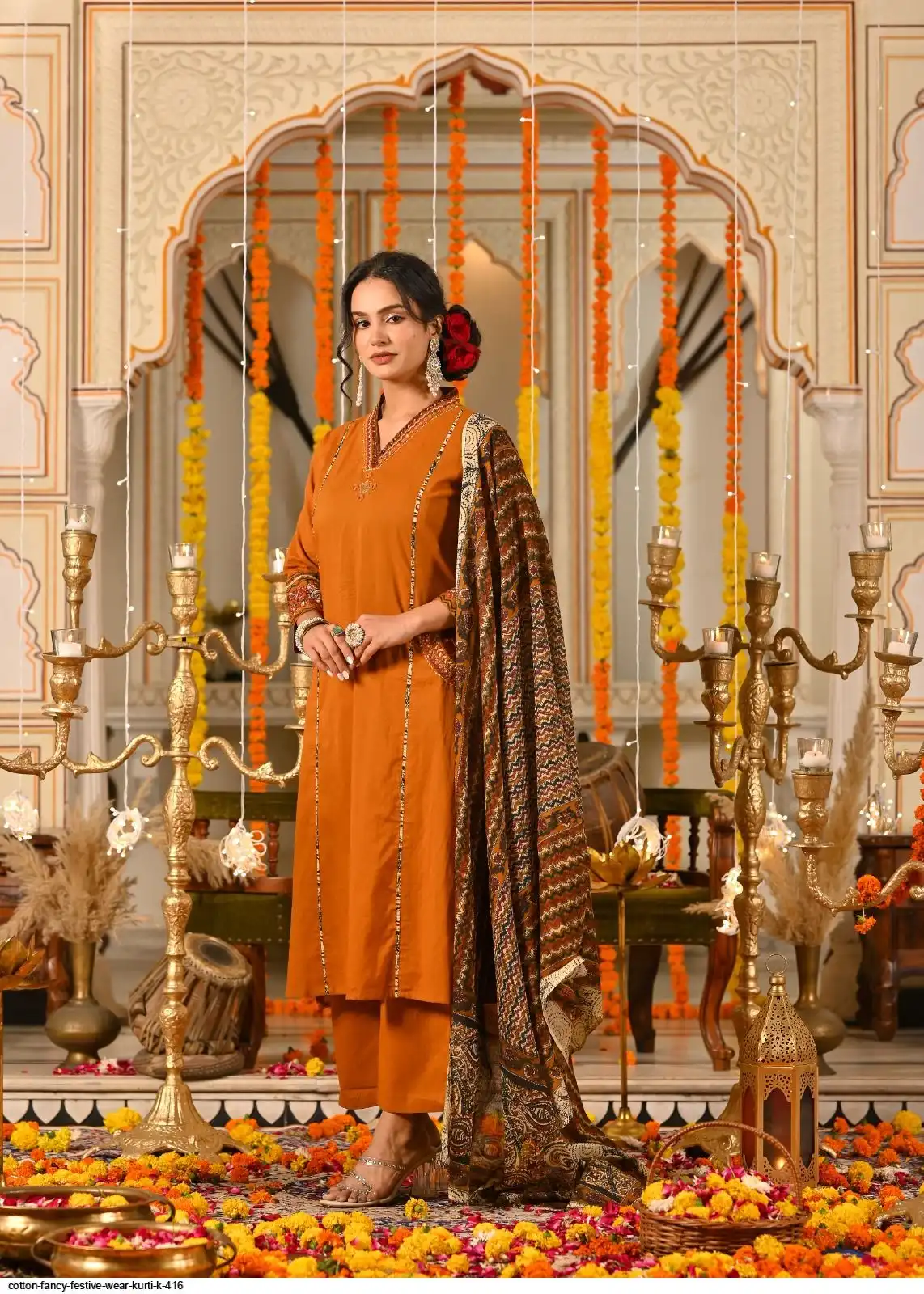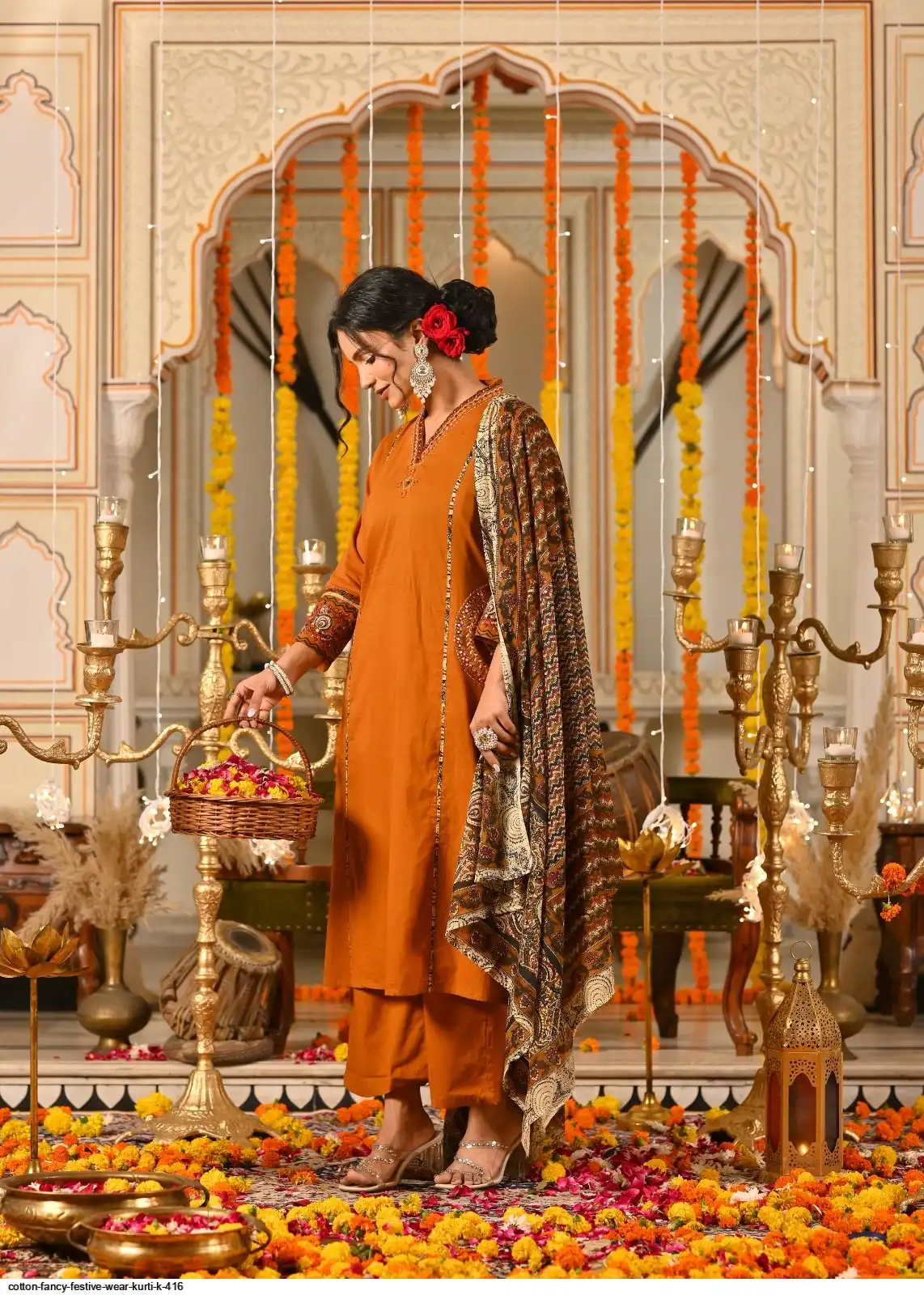 COTTON FANCY FESTIVE WEAR KURTI K 416