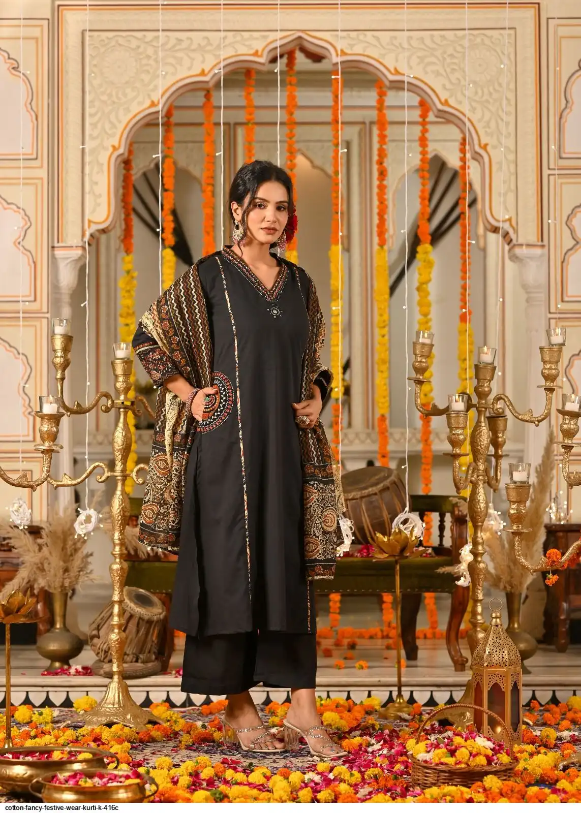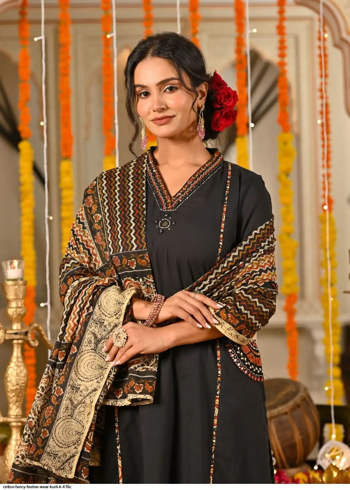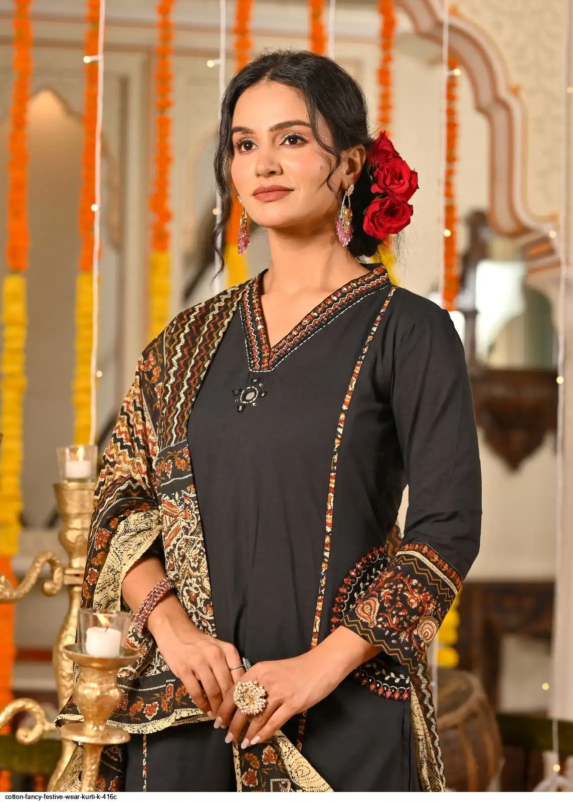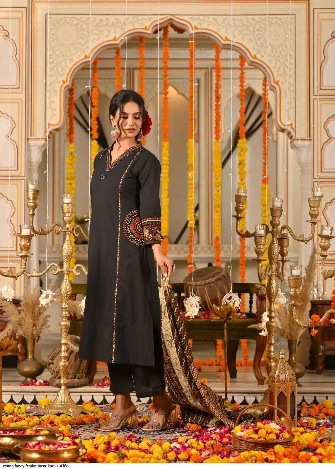COTTON FANCY FESTIVE WEAR KURTI K 416C