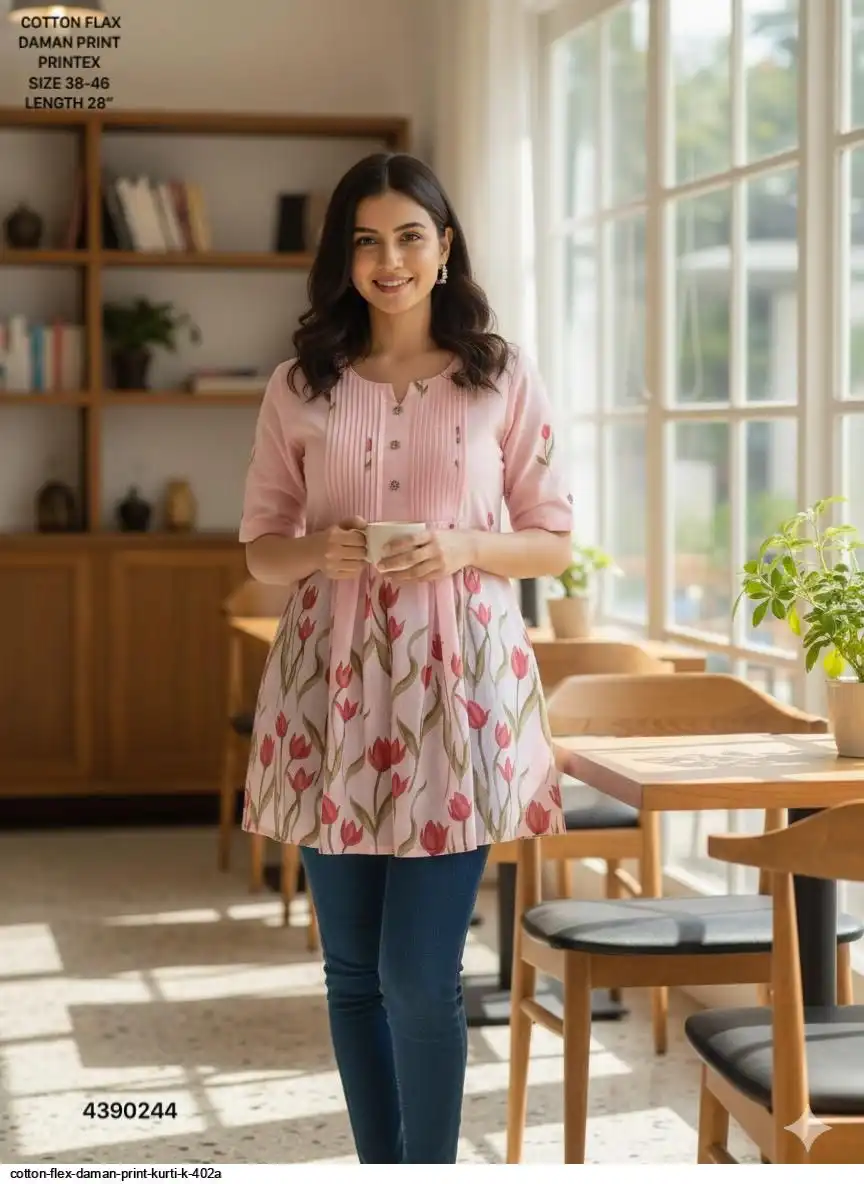 COTTON FLEX DAMAN PRINT KURTI K 402A