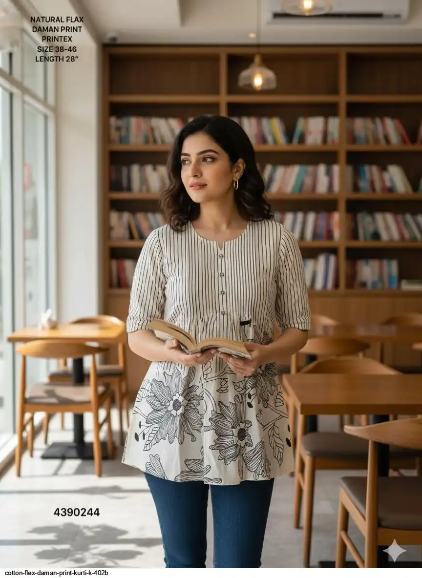 COTTON FLEX DAMAN PRINT KURTI K 402B