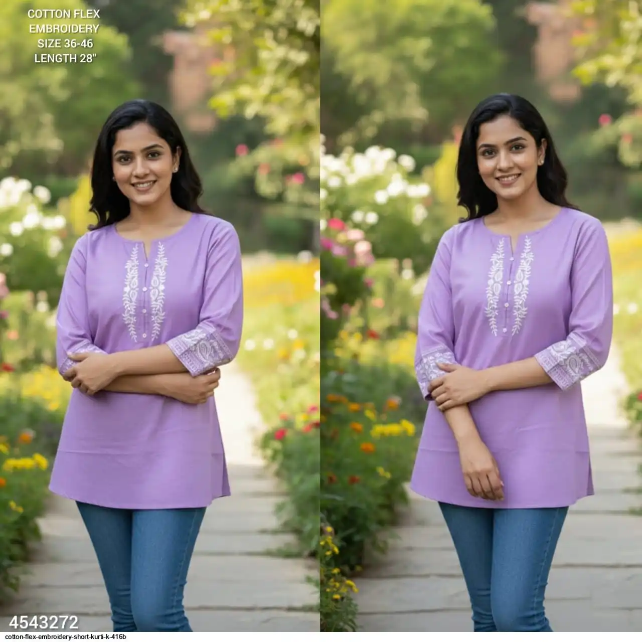COTTON FLEX EMBROIDERY SHORT KURTI K 416B