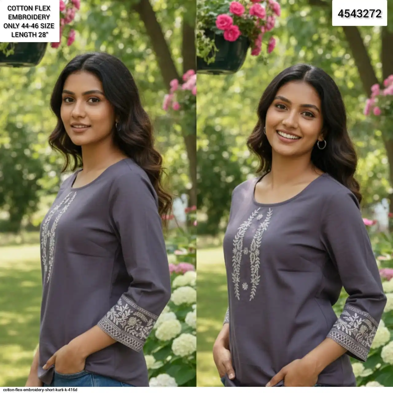 COTTON FLEX EMBROIDERY SHORT KURTI K 416D