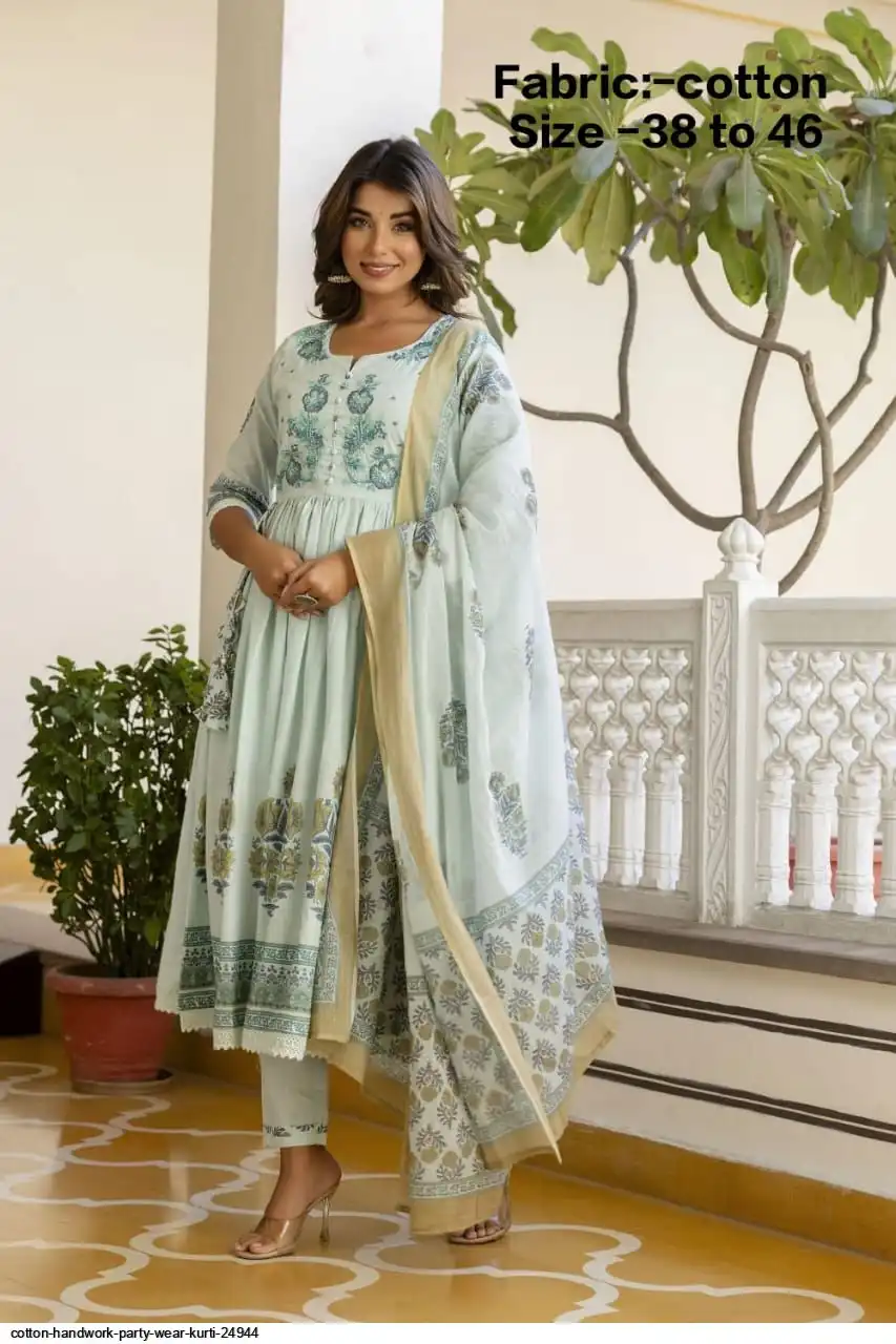 COTTON HANDWORK PARTY WEAR KURTI 24944