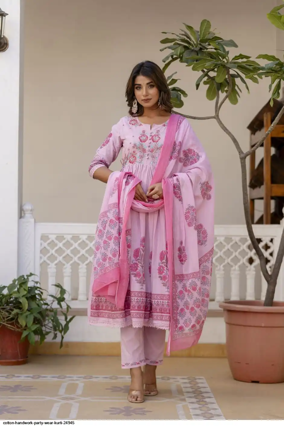 COTTON HANDWORK PARTY WEAR KURTI 24945