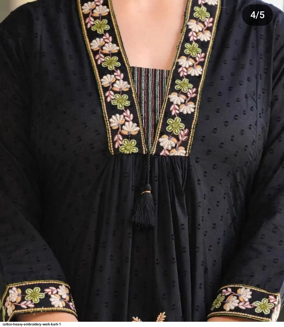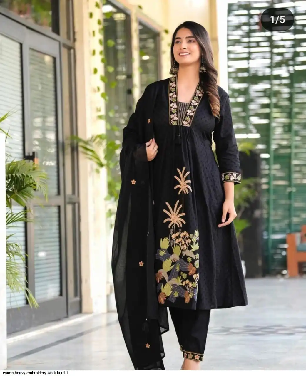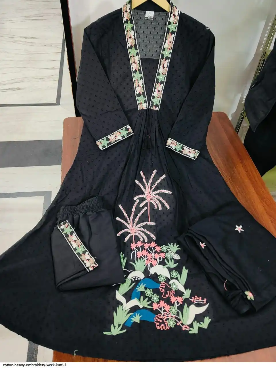 Pure Cotton 60*60 shri ram butta kurti with heavy embroidery work with embroidery pant and embroidery dupatta