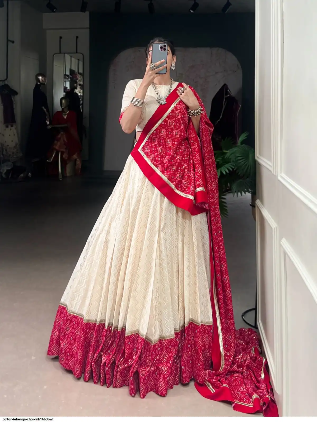 Lehenga Work : Zigzag And Bandhej Print With Sequins Lace Touch Up