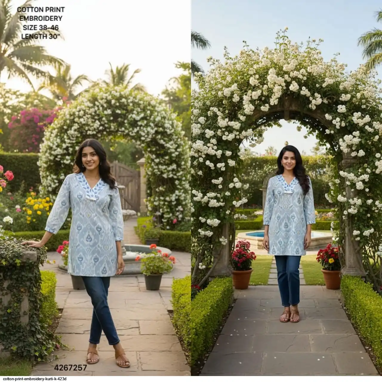 COTTON PRINT EMBROIDERY KURTI K 423D