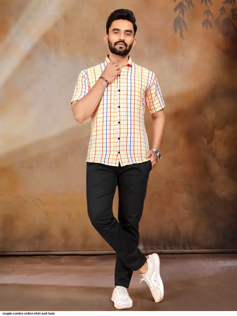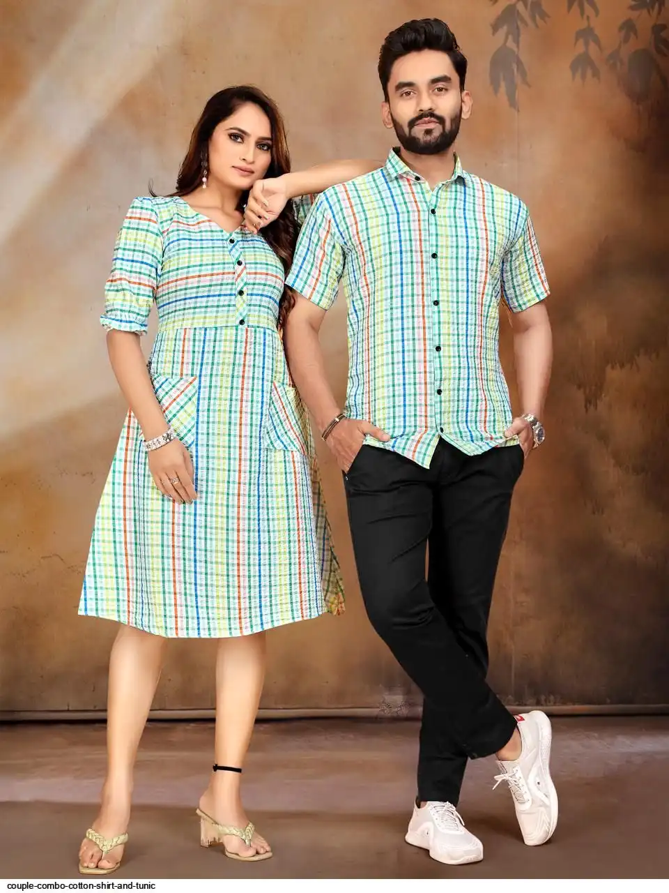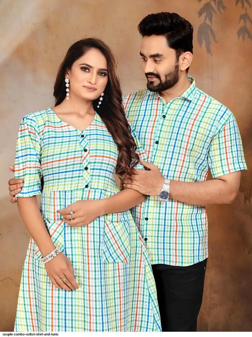 Presenting Couple Mens Shirt & Female Tunic Combo for Festival Season
