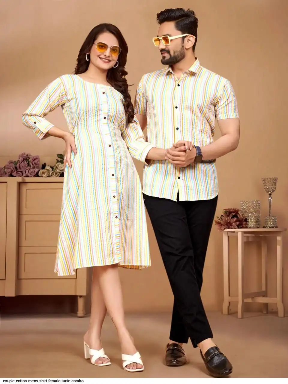 Presenting Couple Mens Shirt & Female Tunic Combo for Festival Season