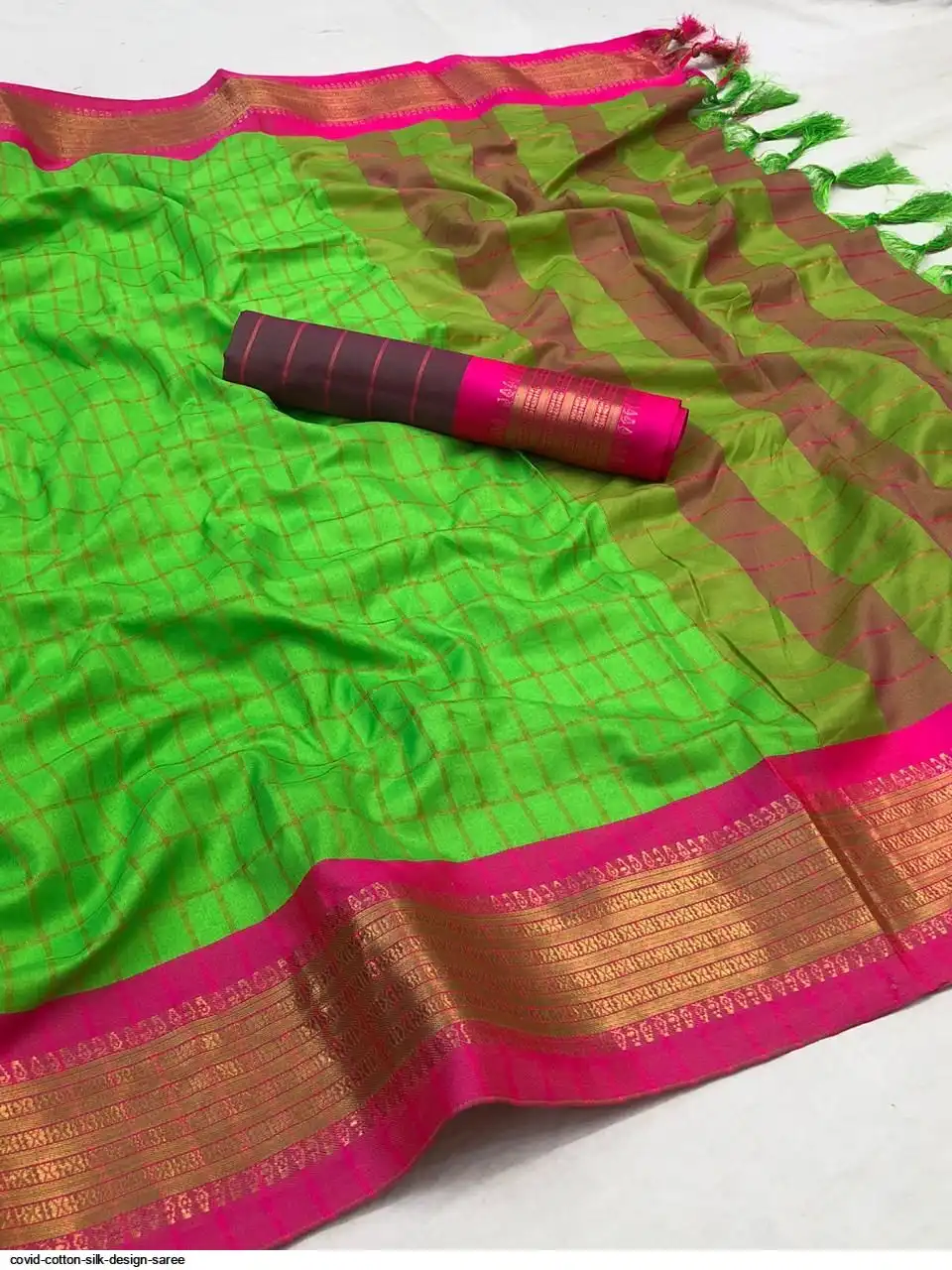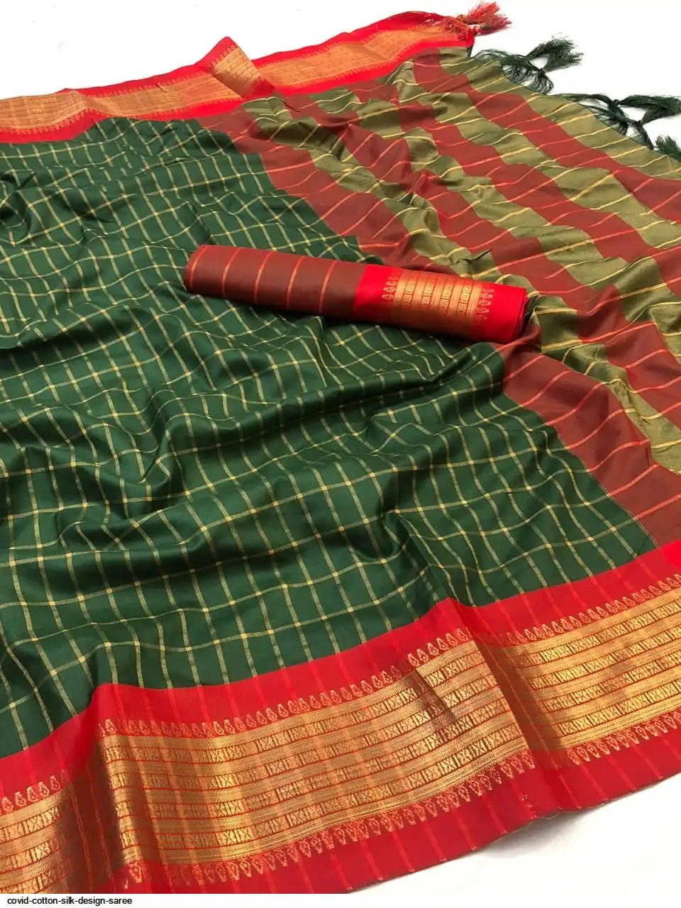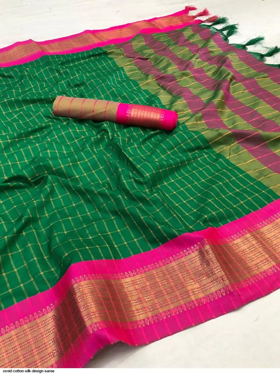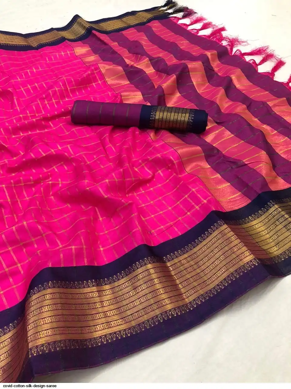 Fabric: HEAVY RICH COTTON SILK DESIGN & JEQUARED WEAVING RICH HEAVY BORDER WITH JACQURD BLOUSE AND CHIT PALLU CONCEPT…