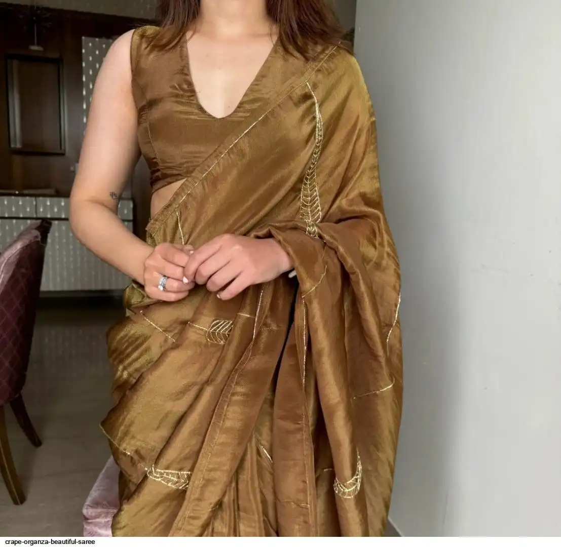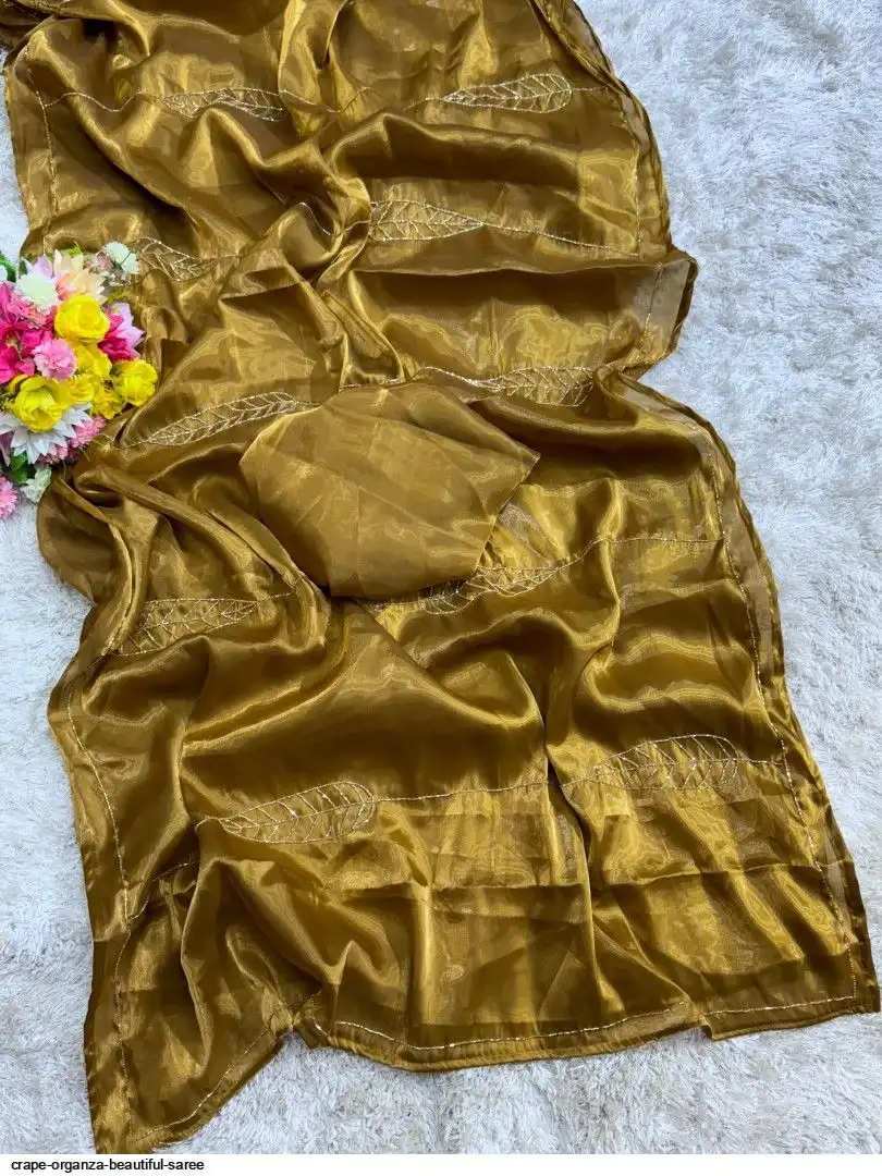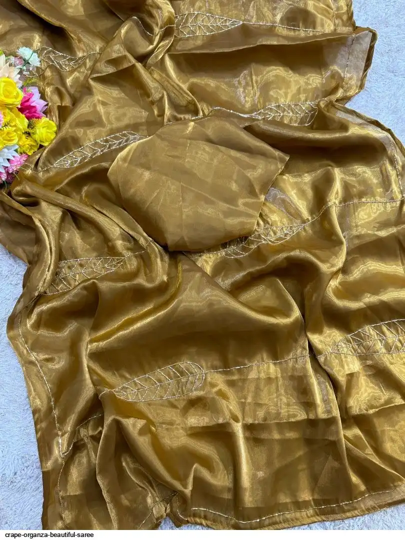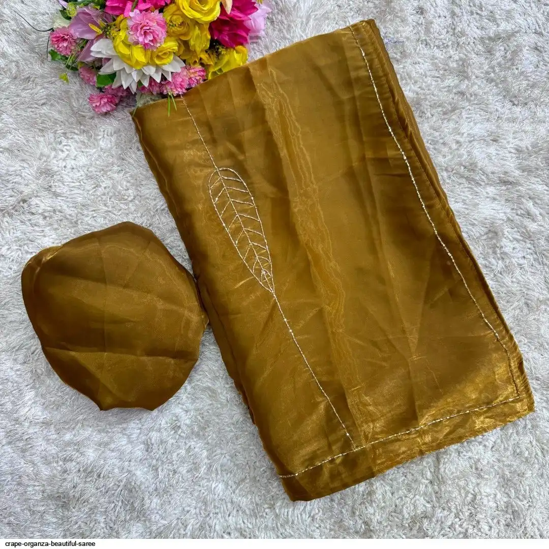 Crape organza saree cover with beautiful handwork all over saree and running unstitch blouse