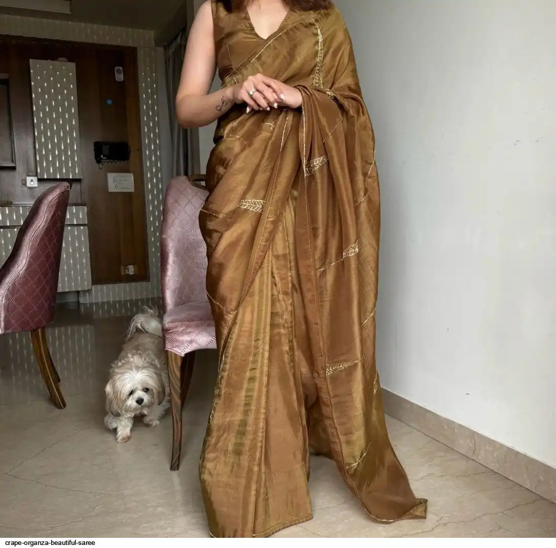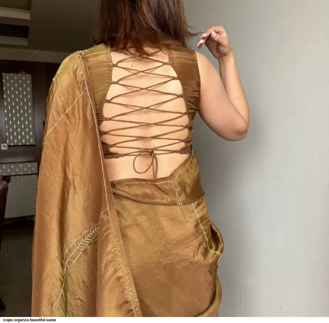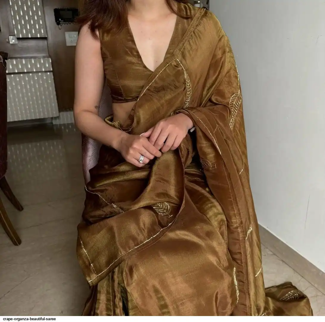 Crape organza saree cover with beautiful handwork all over saree and running unstitch blouse