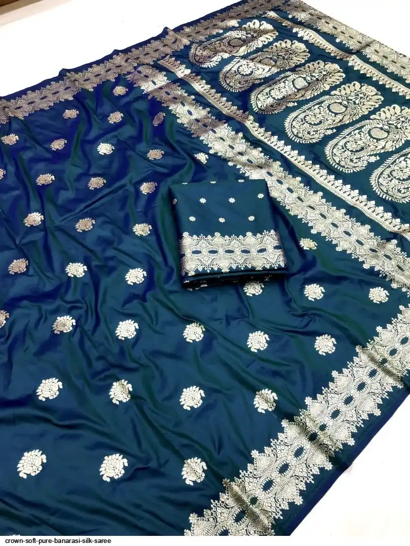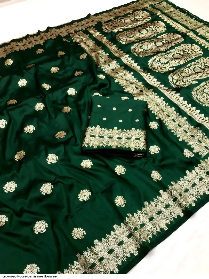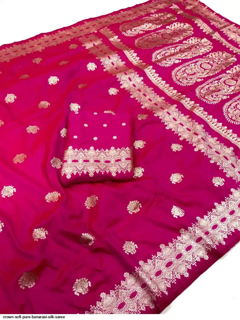 Saree :- Soft And pure banarasi silk saree with self weaving design all over the saree & zari weaving Rich pallu with zari weaving unique border & heavy rich Pallu.